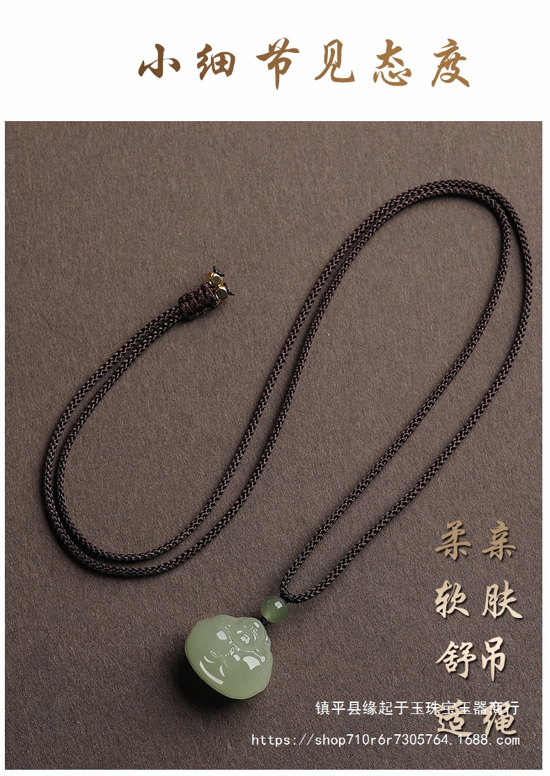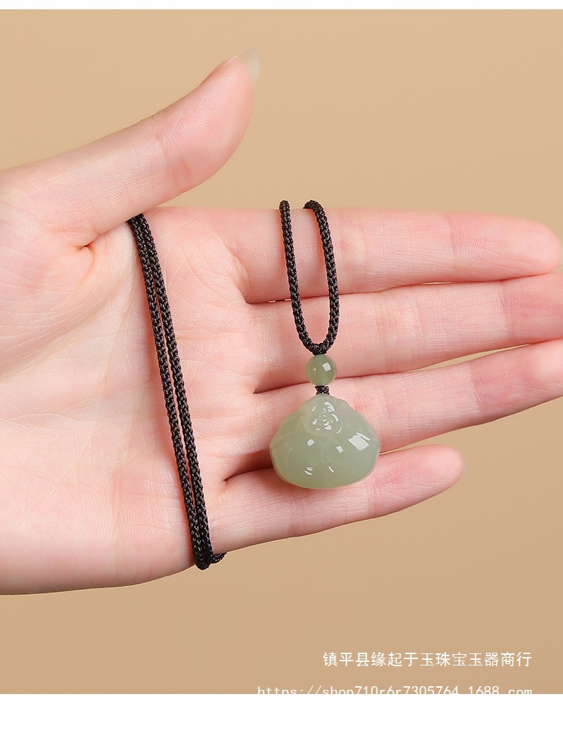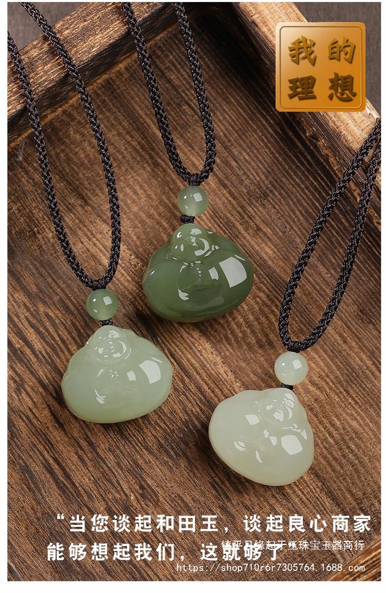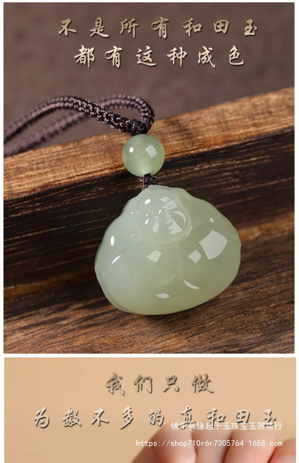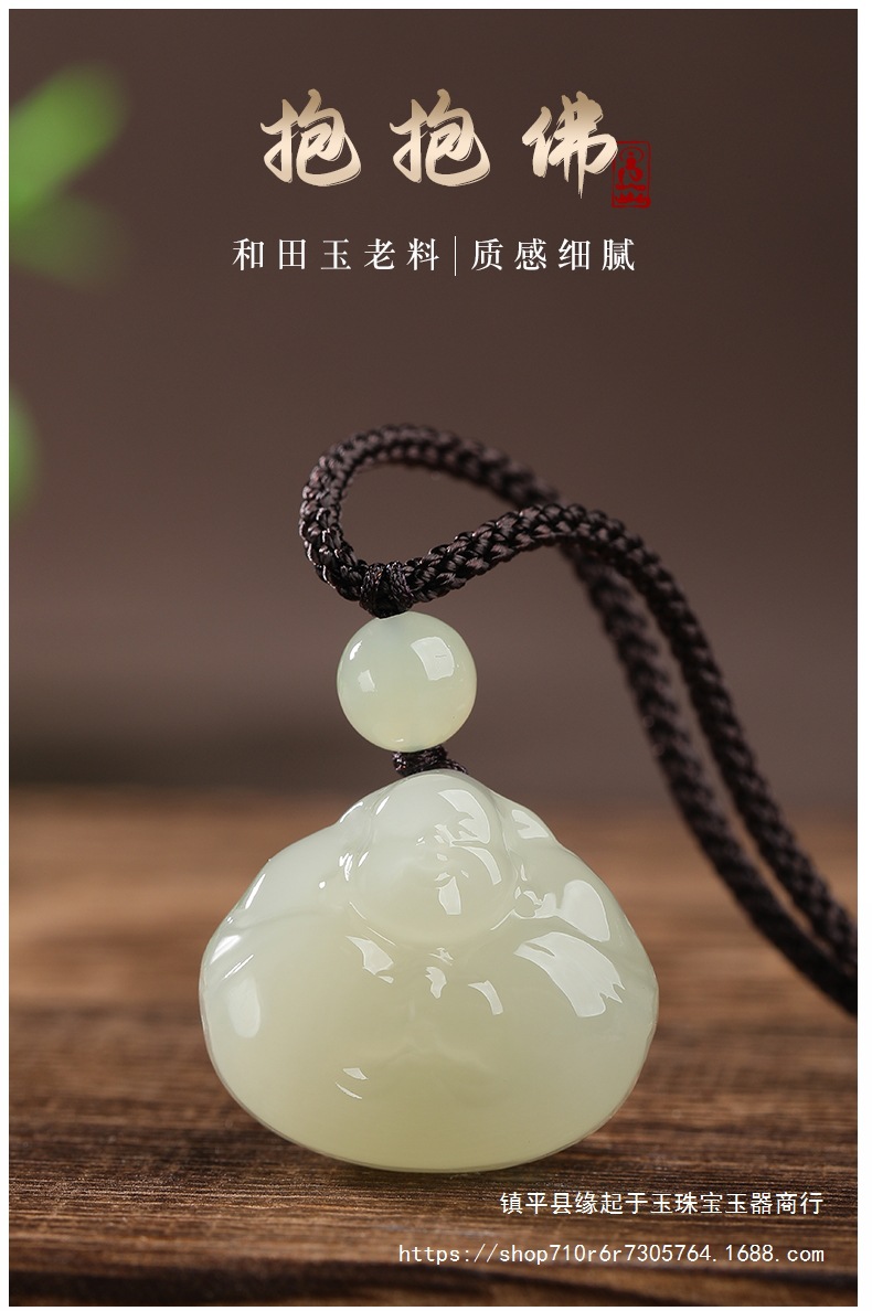 天然新疆と田玉抱擁仏ネックレス晴水料如意弥勒仏笑仏玉ペンダントカップルプレゼント