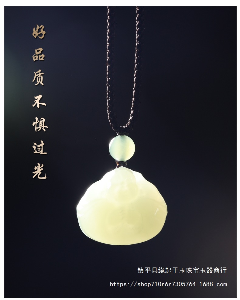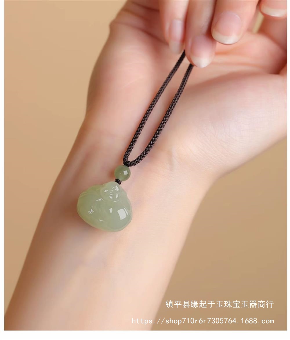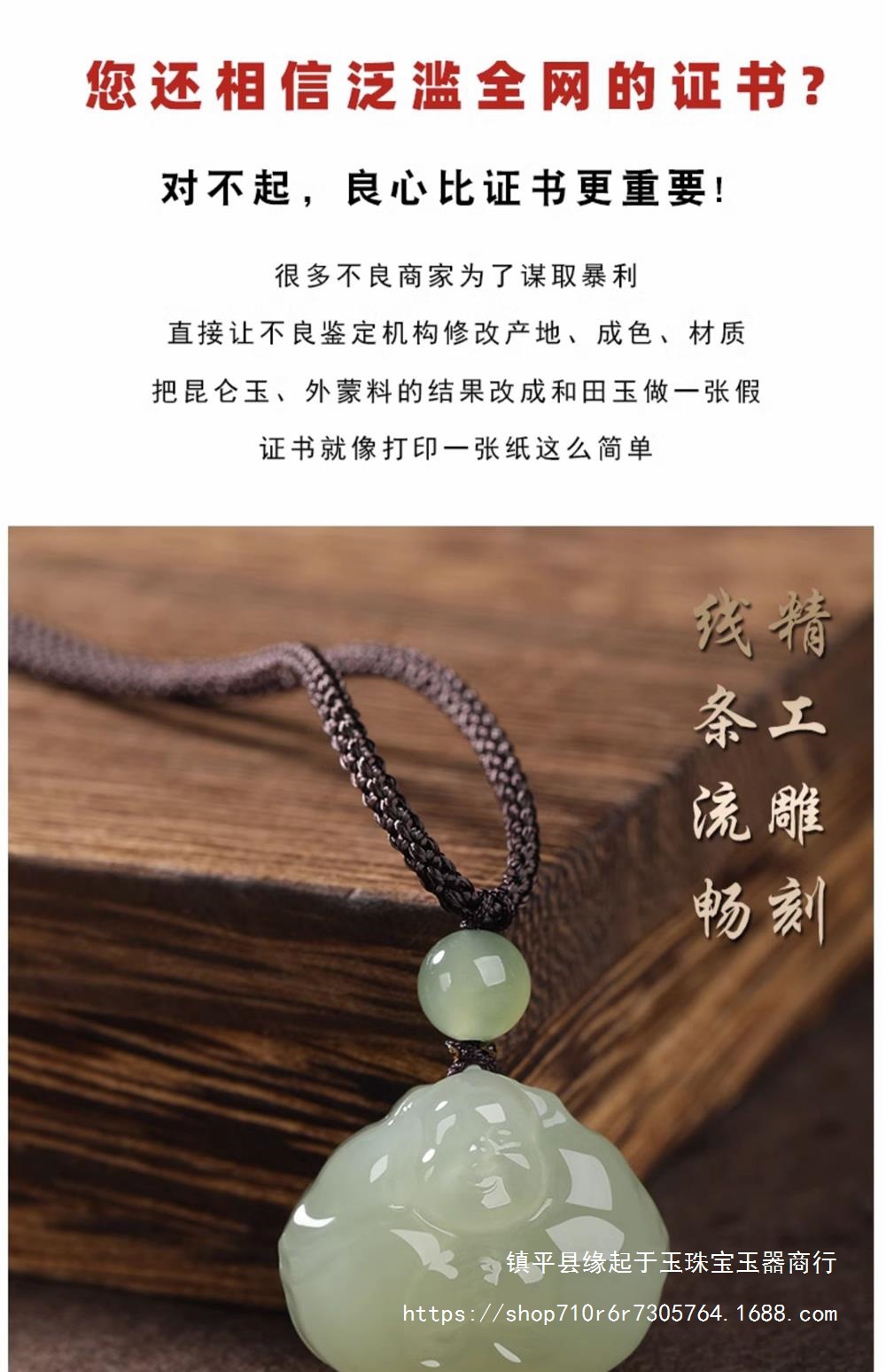 メーカー卸売り天然新疆和田玉抱擁仏ペンダント女性金精雕湖水緑玉仏ストラップは証明書を送る