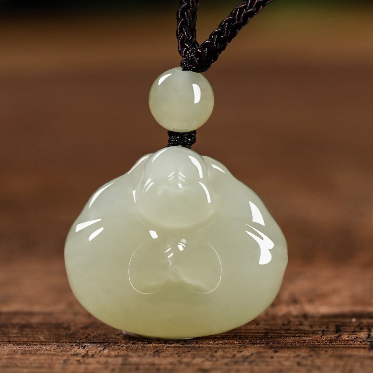 保真天然和田玉弥勒仏ペンダント女性玉仏頭玉ペンダントネックレス小仏公玉玉ペンダント