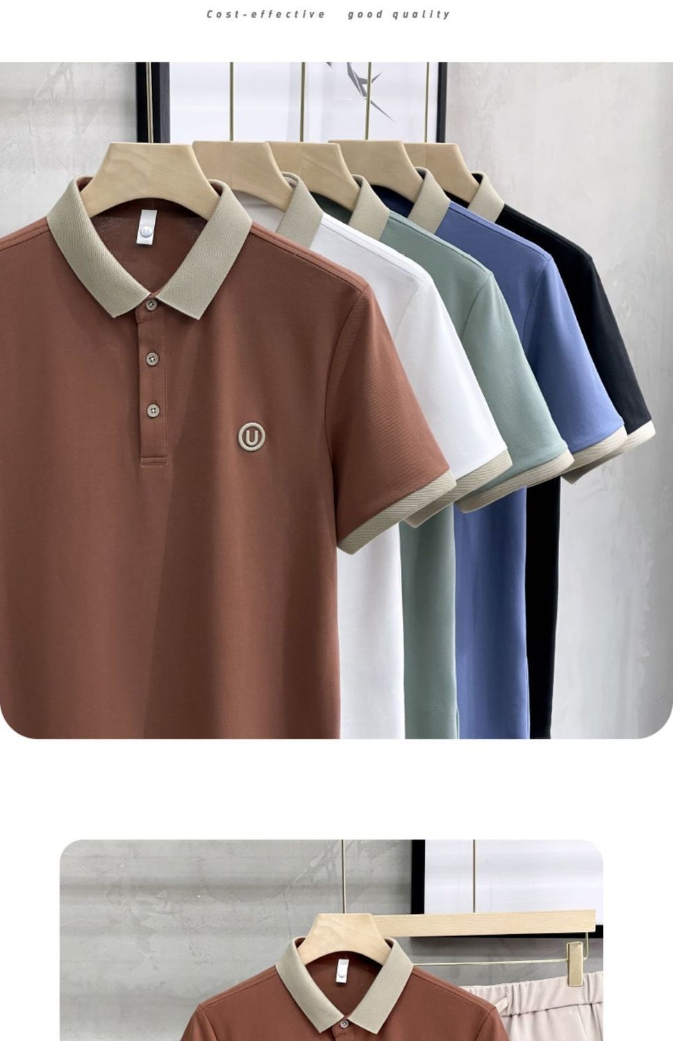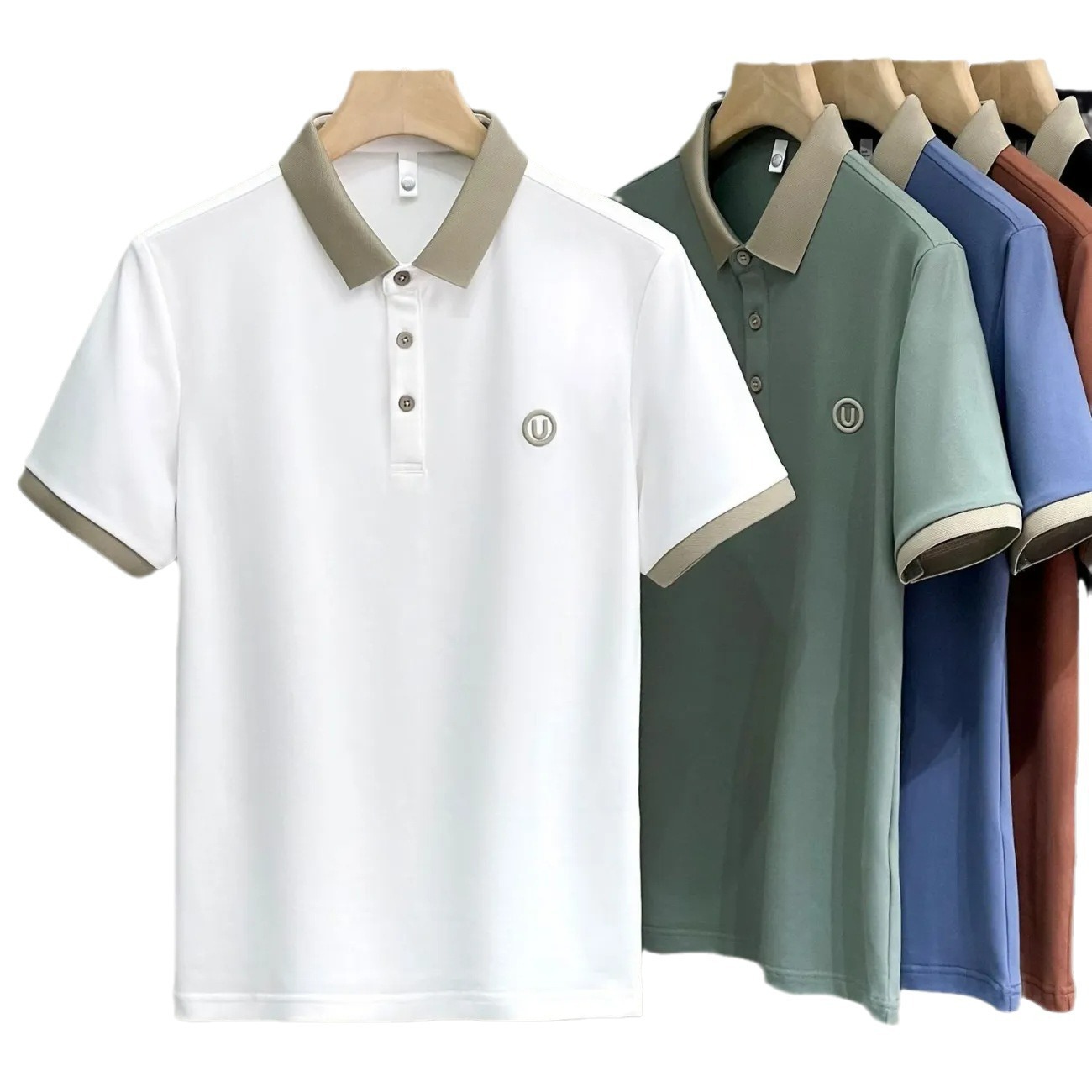 純色半袖poloシャツ修身百合有襟上着tシャツ男性夏2025ファッショントレンド襟レジャー