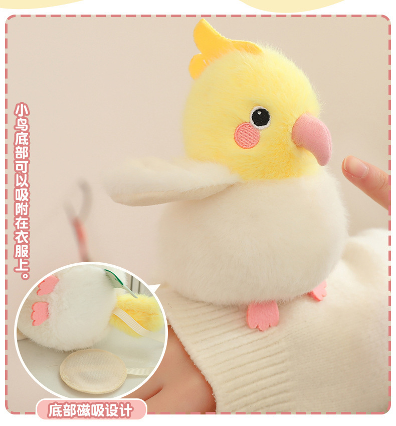 可爱站肩小鸟公仔跨境磁吸金丝雀几维鸟玩偶装饰摆件儿童安抚娃娃