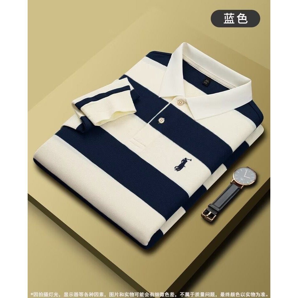 工厂直销2026新款夏季条纹短袖休闲潮牌男士翻领刺绣T恤时尚百搭