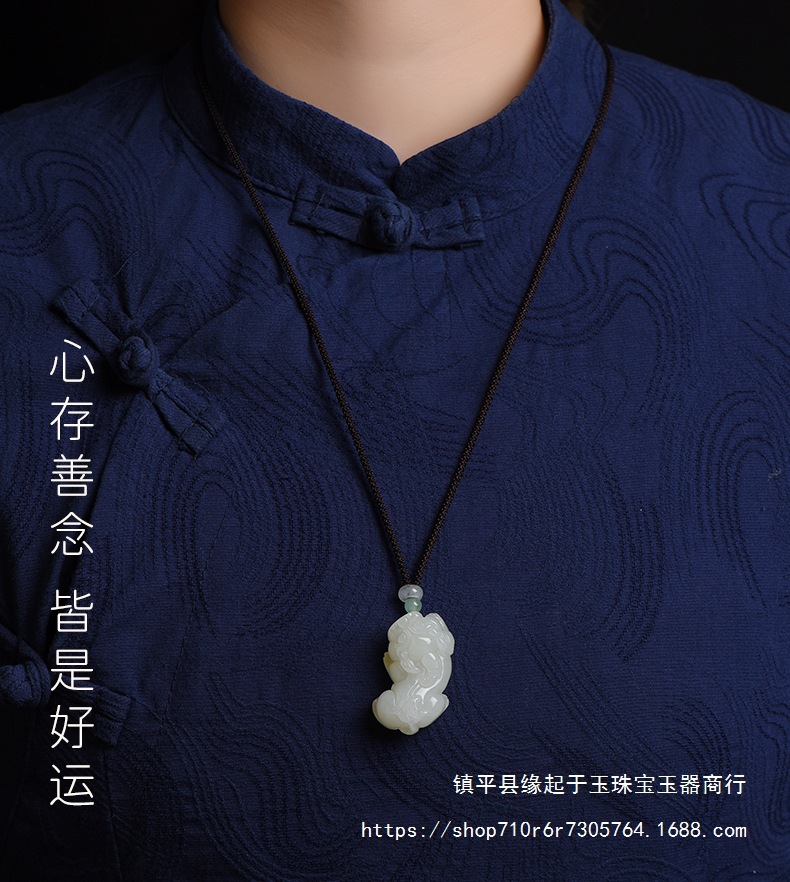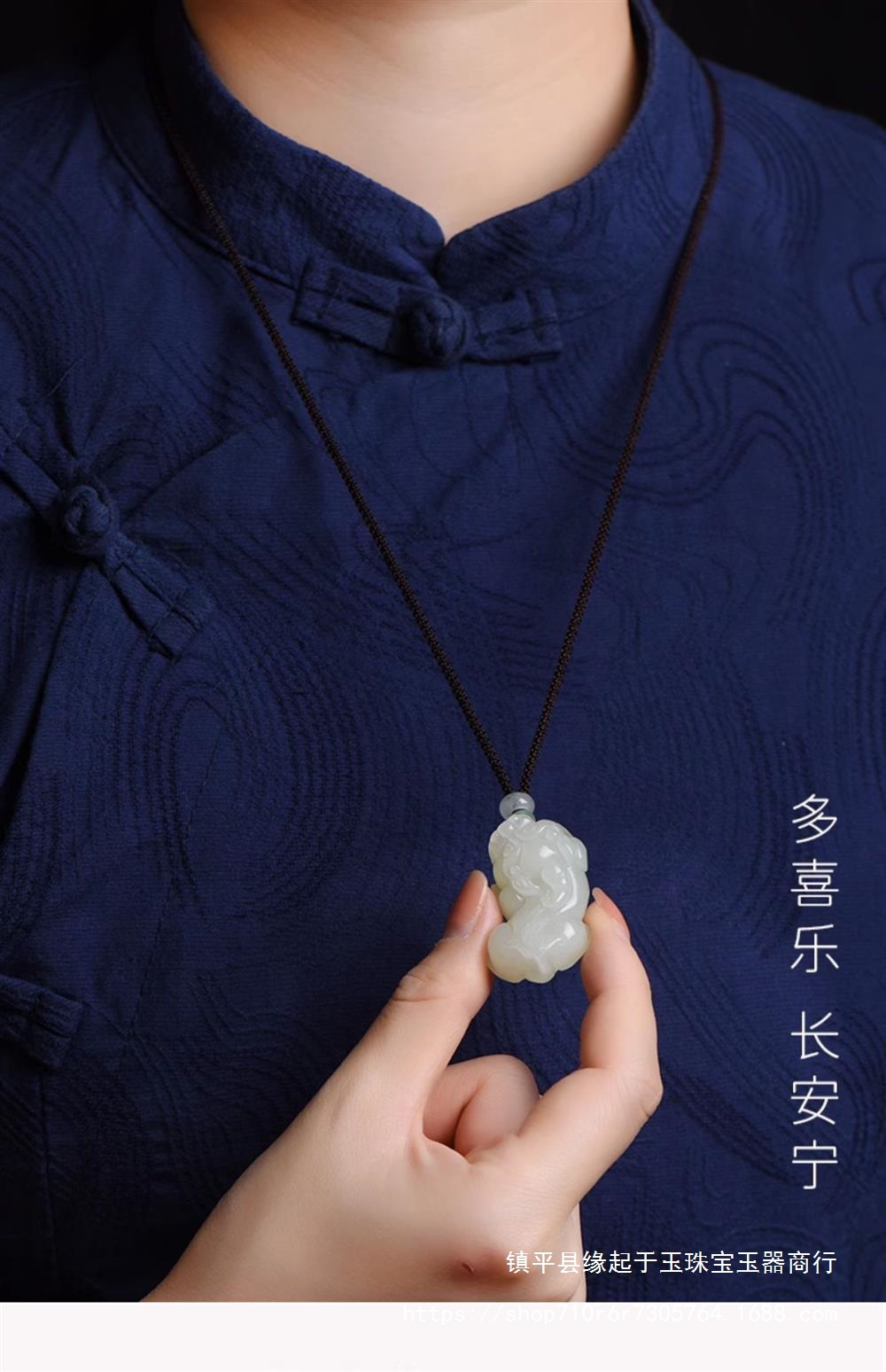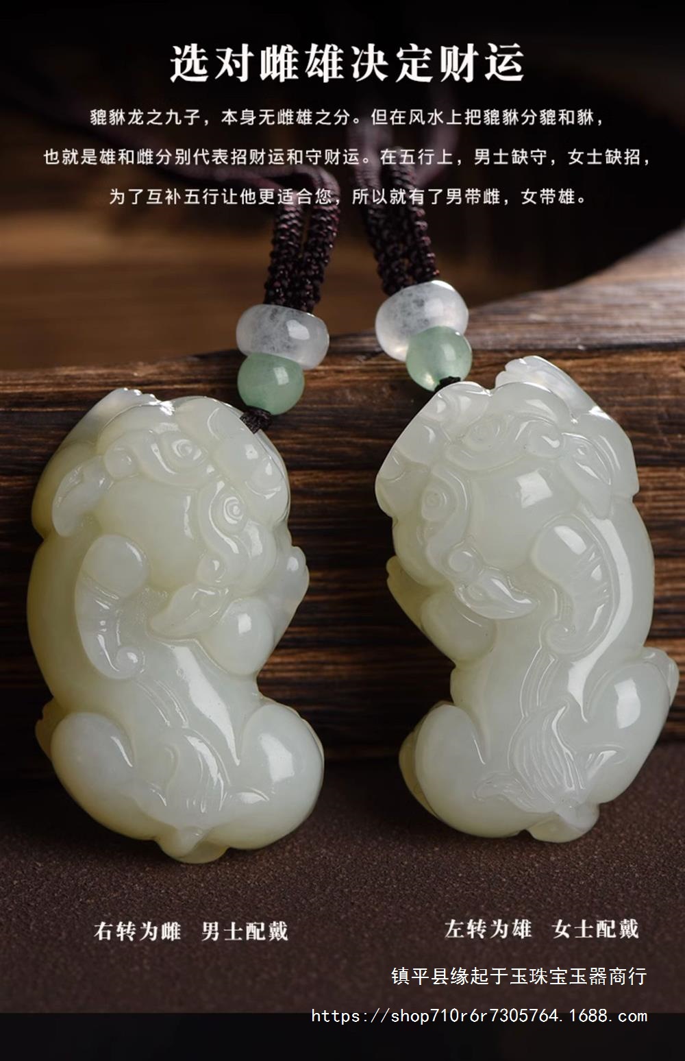 天然新疆と田玉の小さいピシュピストのペンダント瑞獣白玉皮丘玉のネックレスの男女のカップル