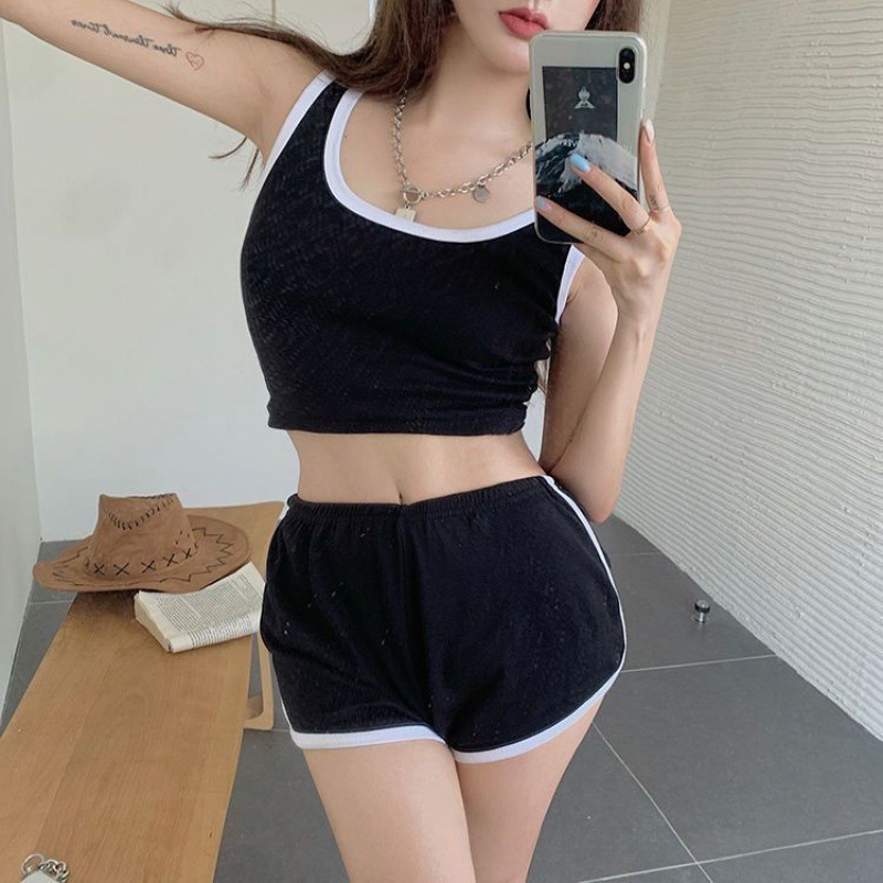 女性用のトレンディなスリムな夏のヨガウェア、ノースリーブカジュアルショーツ、スポーツショートボディフィット