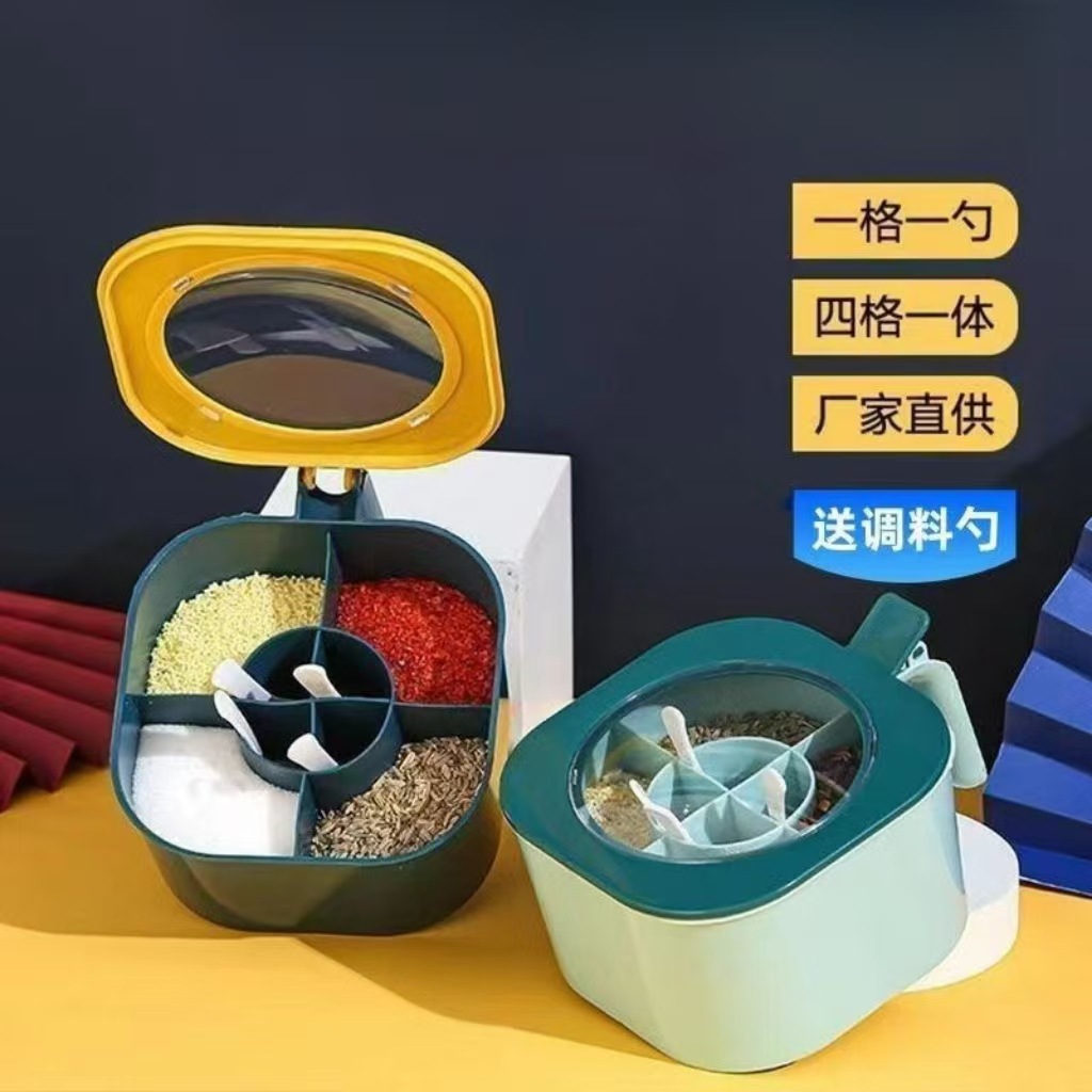 キッチン調味料ボックス蓋付き防湿調味料ボックス四格一体調味料ボックス塩味の素砂糖調味料収納ボックス