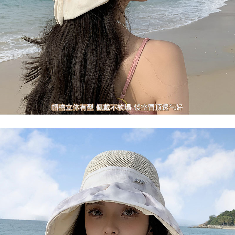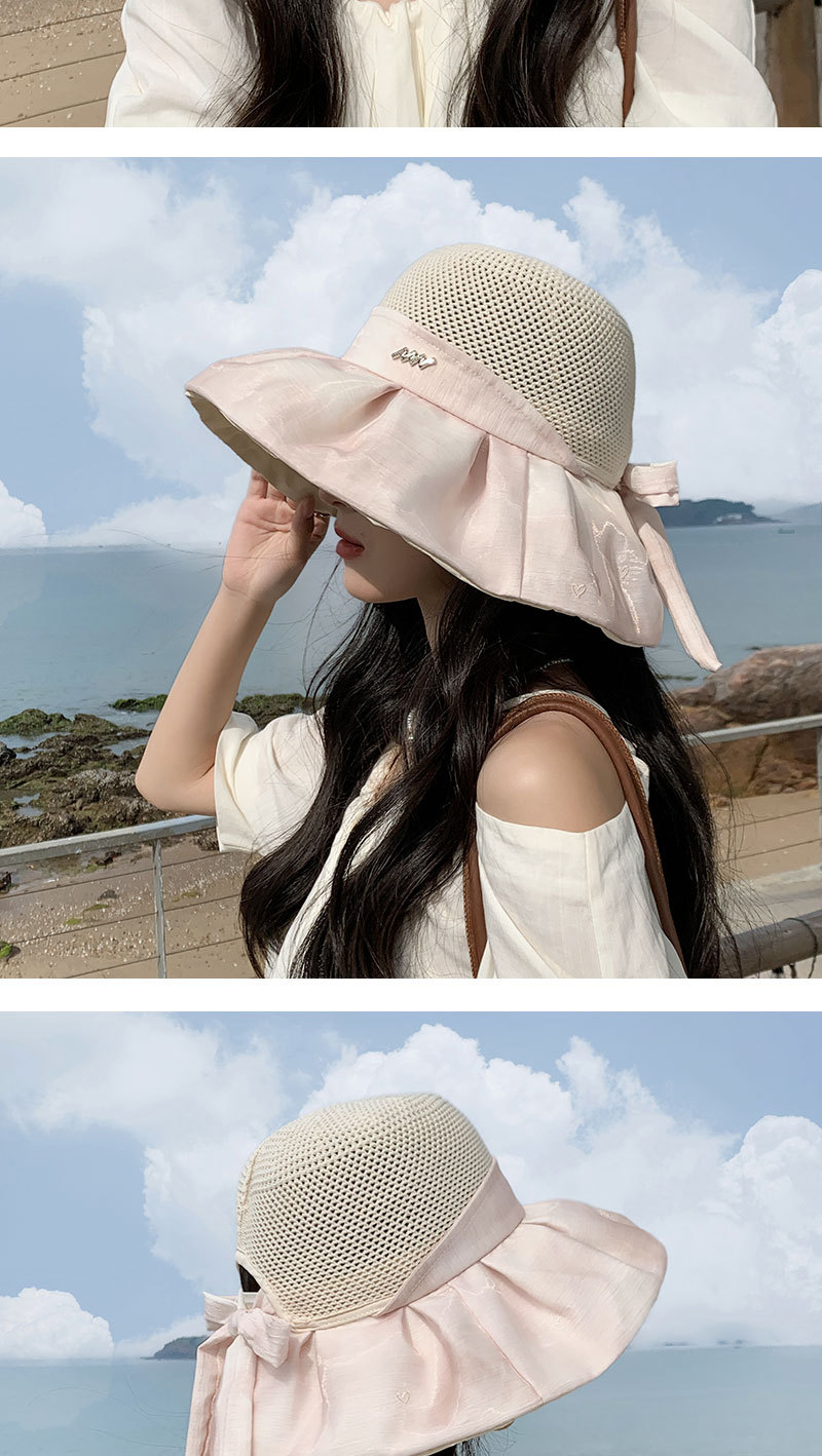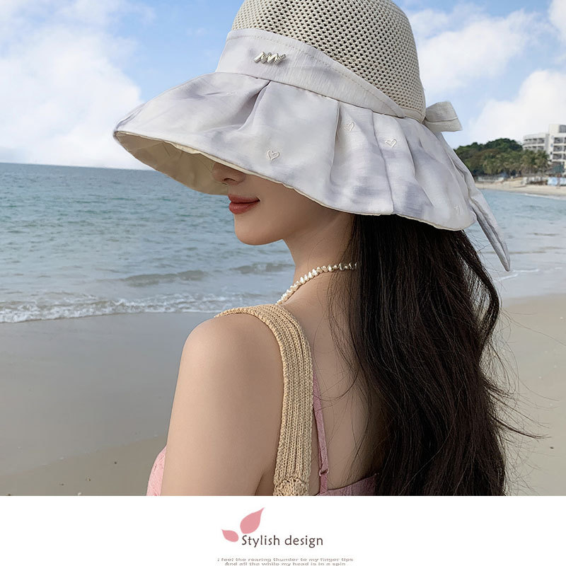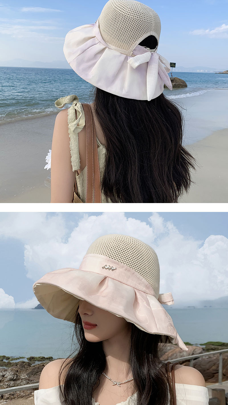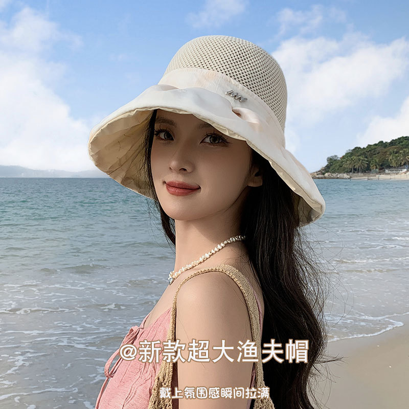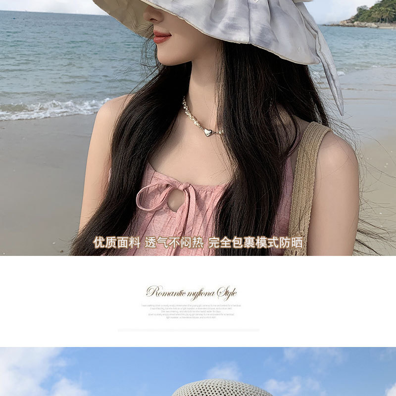 特大つば麦わら帽子さん夏の日焼け止めは帽子に沿って海辺の蝶結びのビーチ帽の日よけ帽子の太陽帽です。