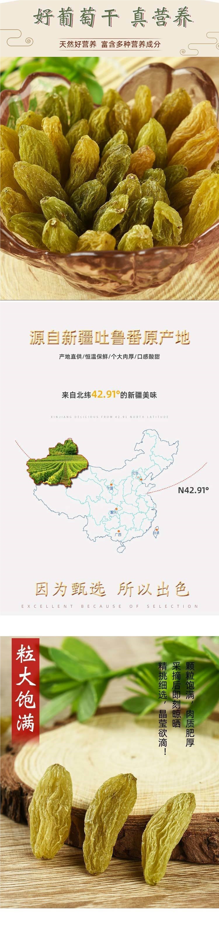 新疆葡萄干特产超大优质绿香妃5g 个厘米 无籽干净包即食