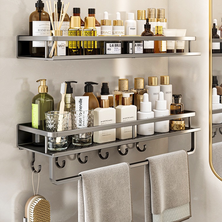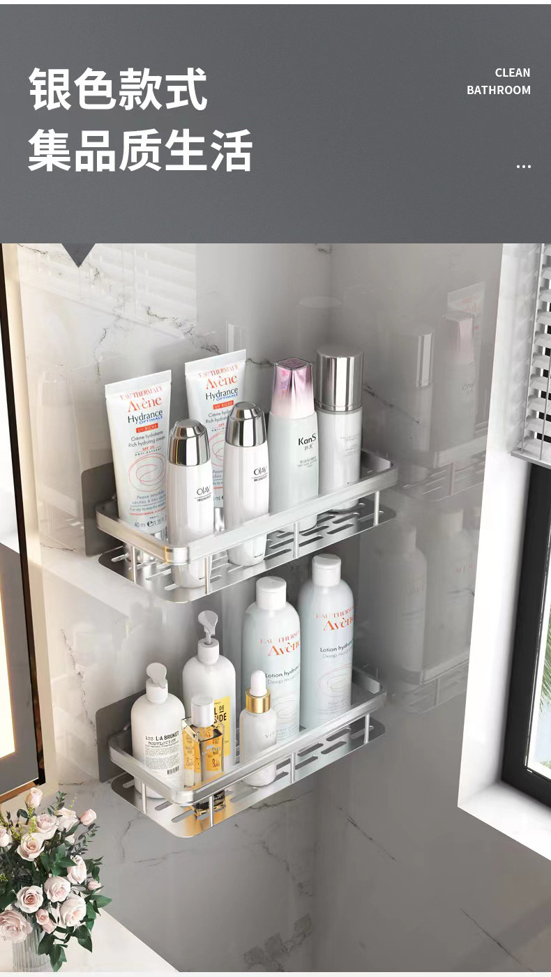 バスルーム収納ラック、スペースアルミニウム製、穴あけ不要、吸盤式、壁掛け、キッチン、バスルーム収納、穴あけ不要収納ラック