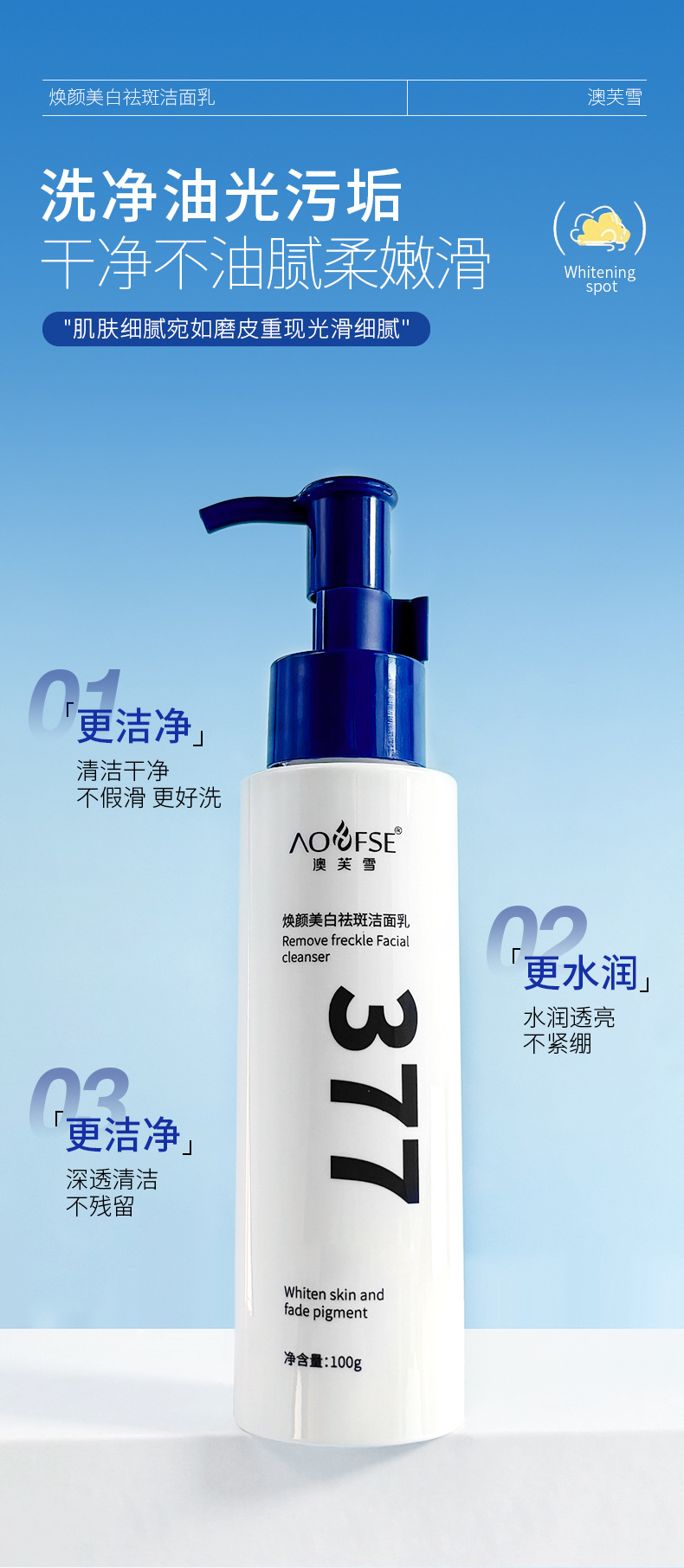 澳芙雪377美白シミ取り洗顔料はシミを薄めて肌の色を明るくします。