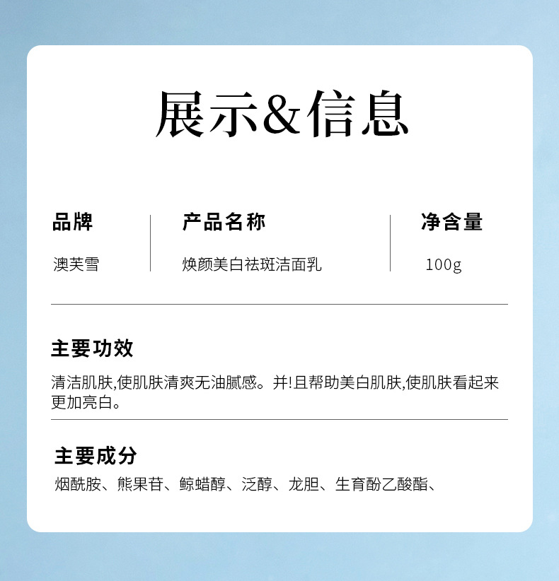 澳芙雪美白シミ洗顔料は温和で清潔で繊細な毛穴が肌の色を明るくして洗顔料工場を清潔にする