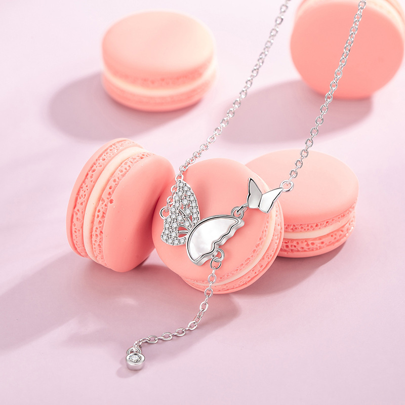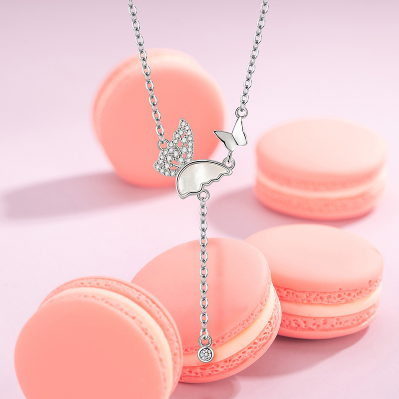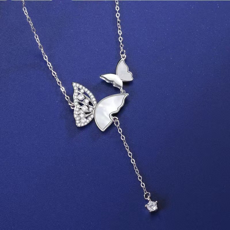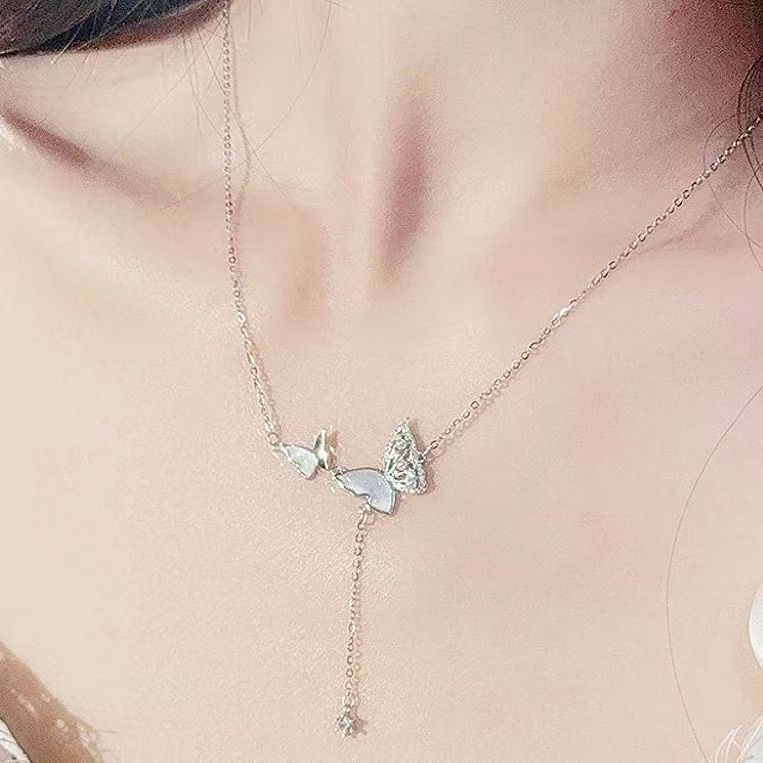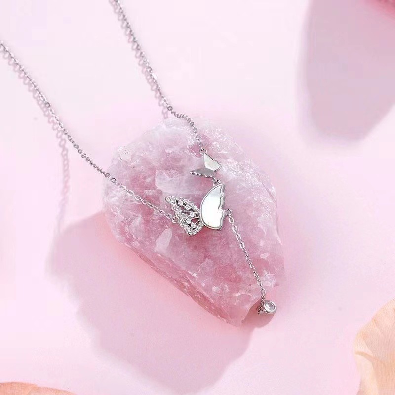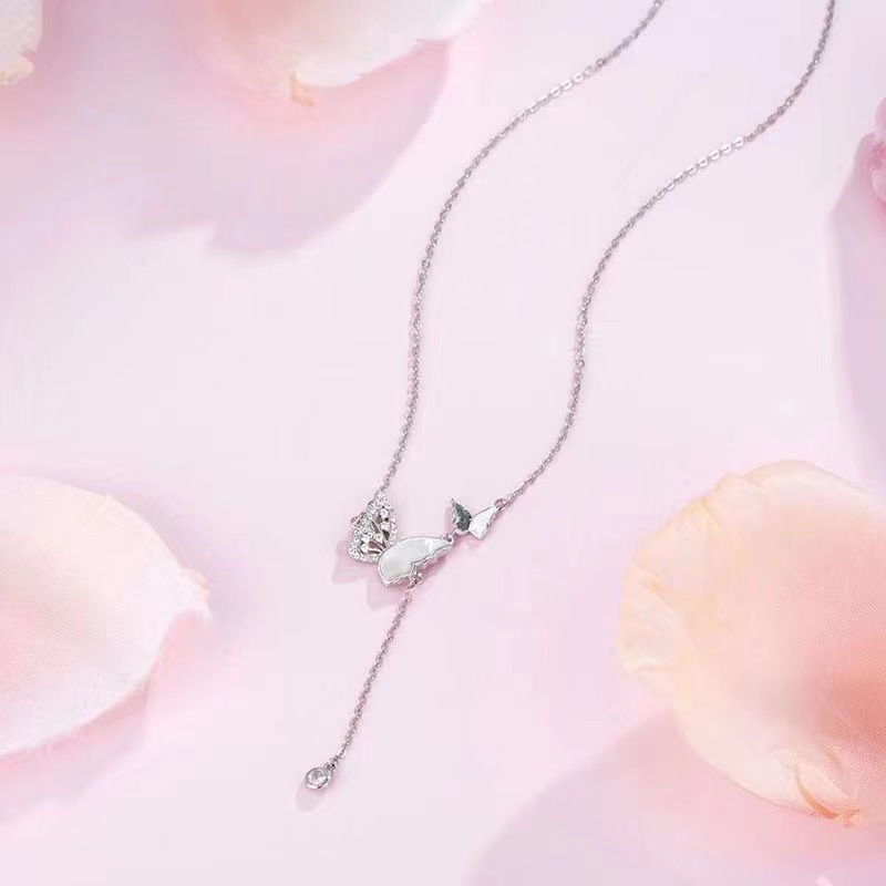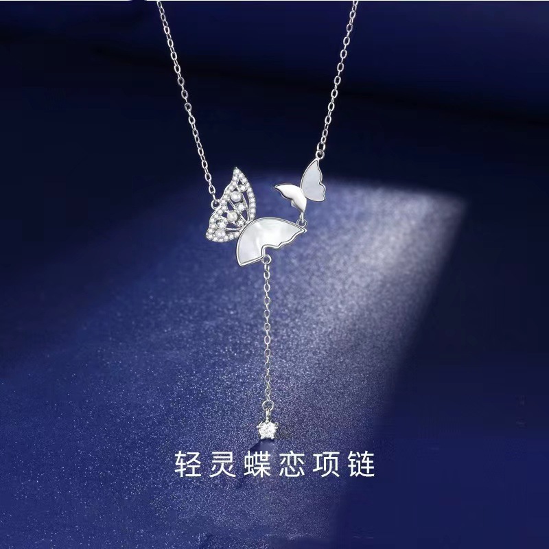 光影の蝶のネックレスの女性の純銀の蝶結びの鎖は甘くてシンプルです。
