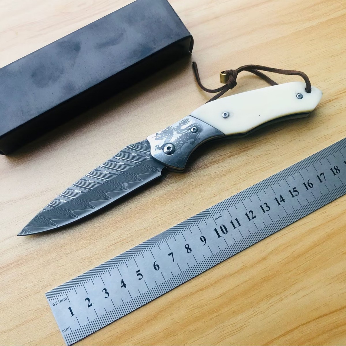 クロスボーダー新しいダマスカスアウトドア折りたたみナイフサバイバル折りたたみナイフキャンプ折りたたみシャープキーホルダーナイフ