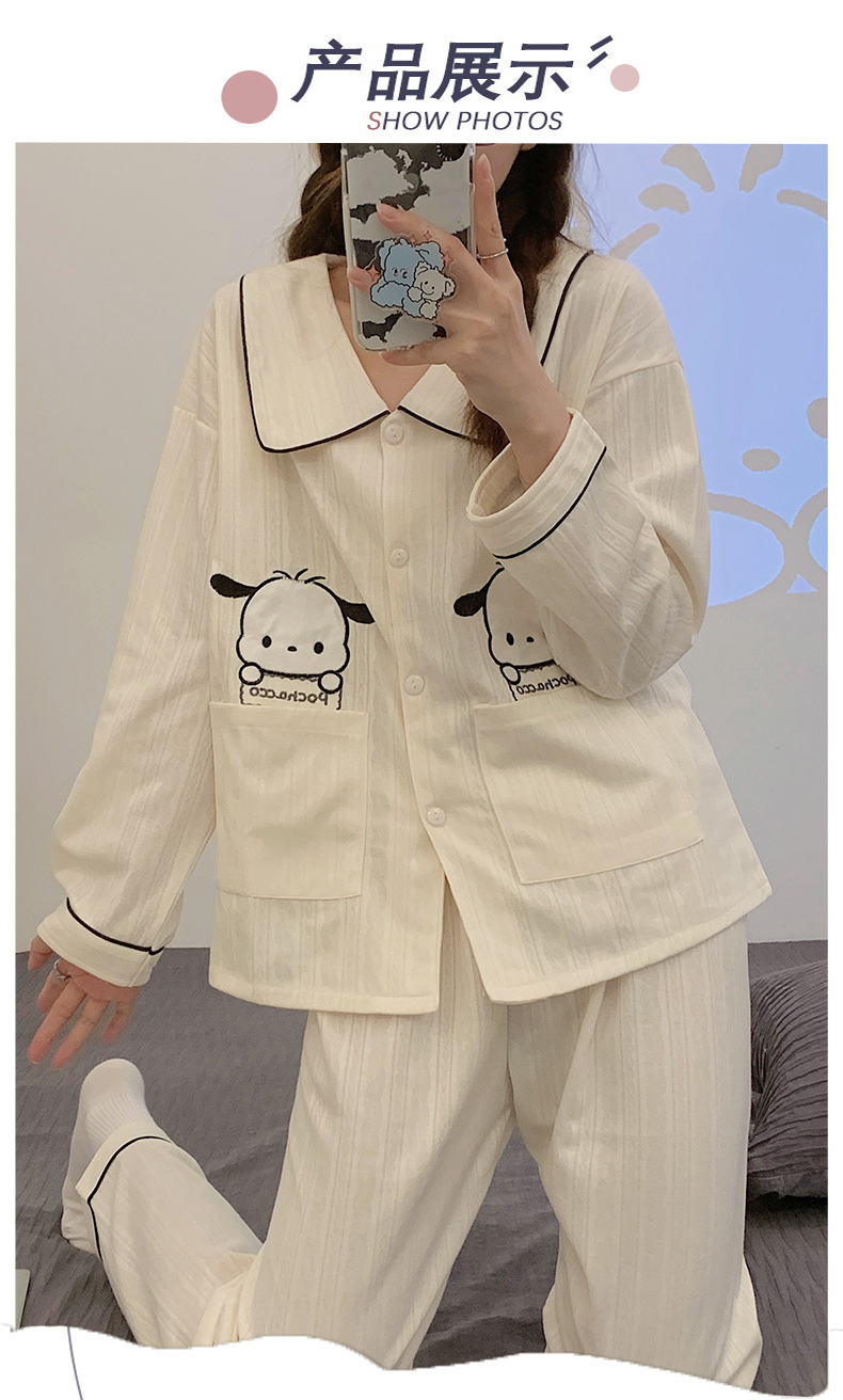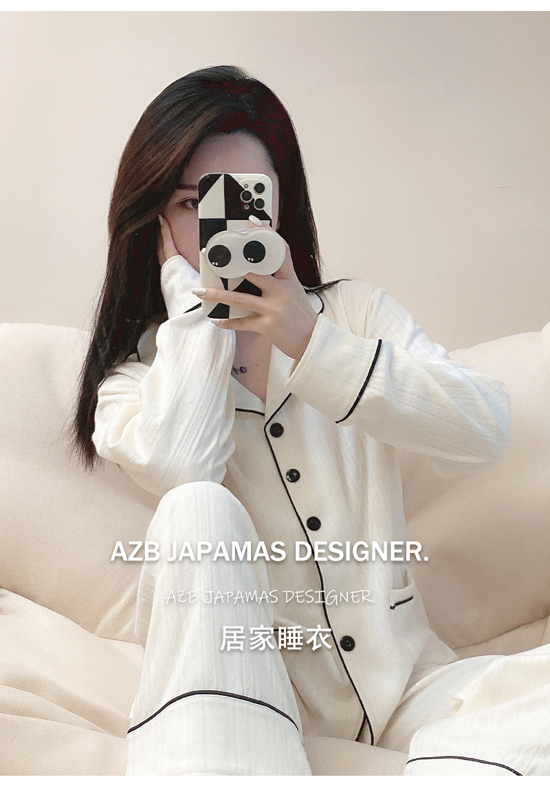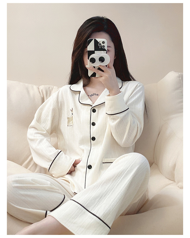 源头工厂秋季宽松慵懒舒适甜美纯色开衫长袖长裤套装家居服