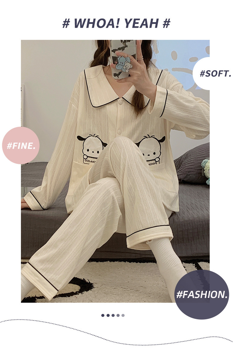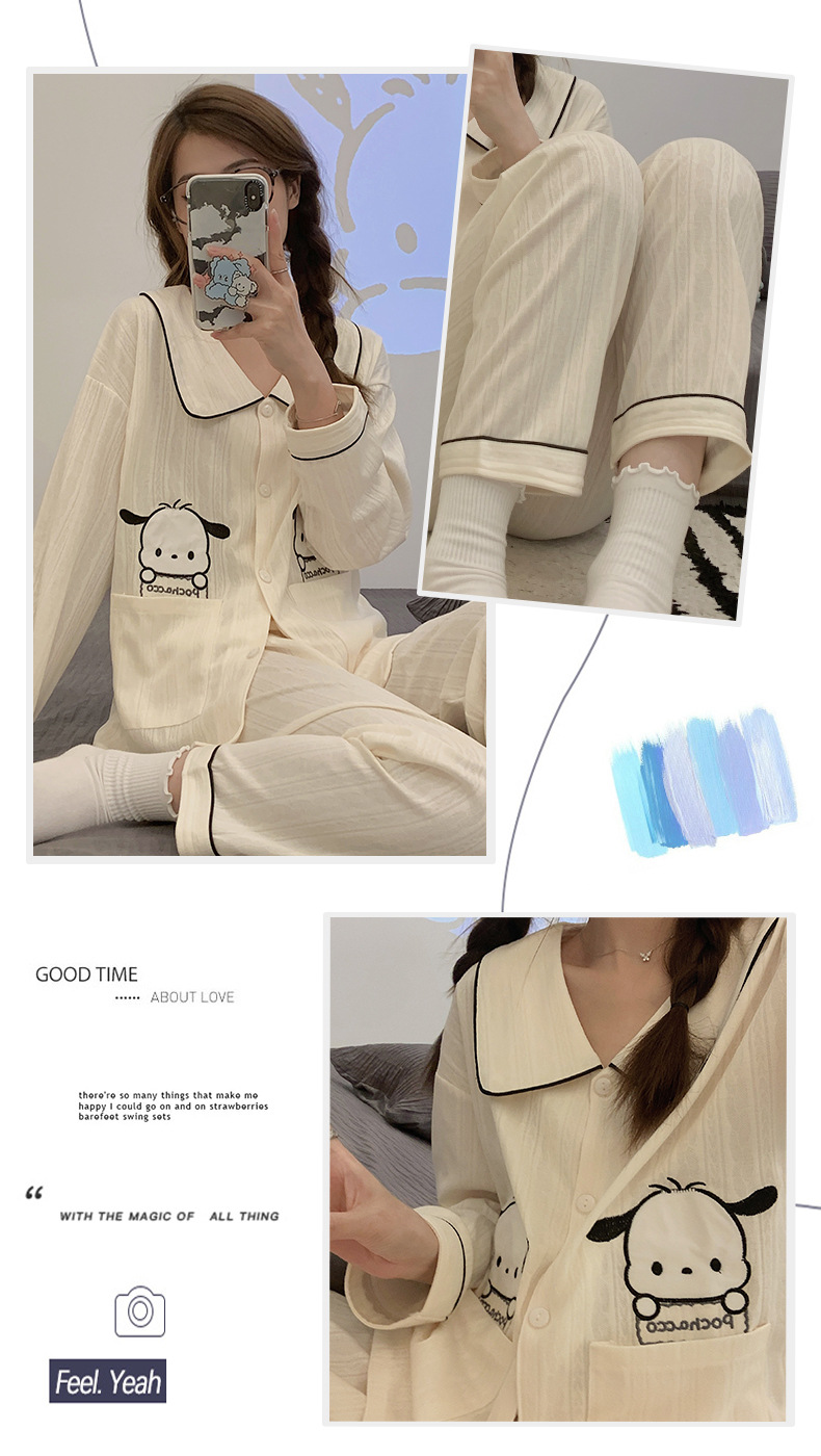 工場直送のかわいい羊飼い犬柄パジャマ、女性用長袖、春と秋に最適、シンプルで人気のネット風、学生さんでも外で着られるホームウェア。