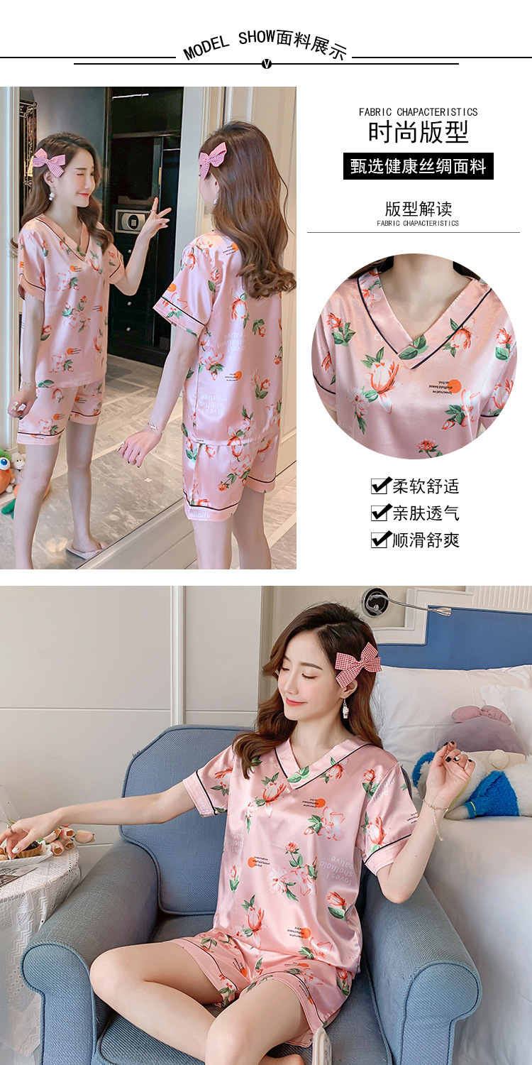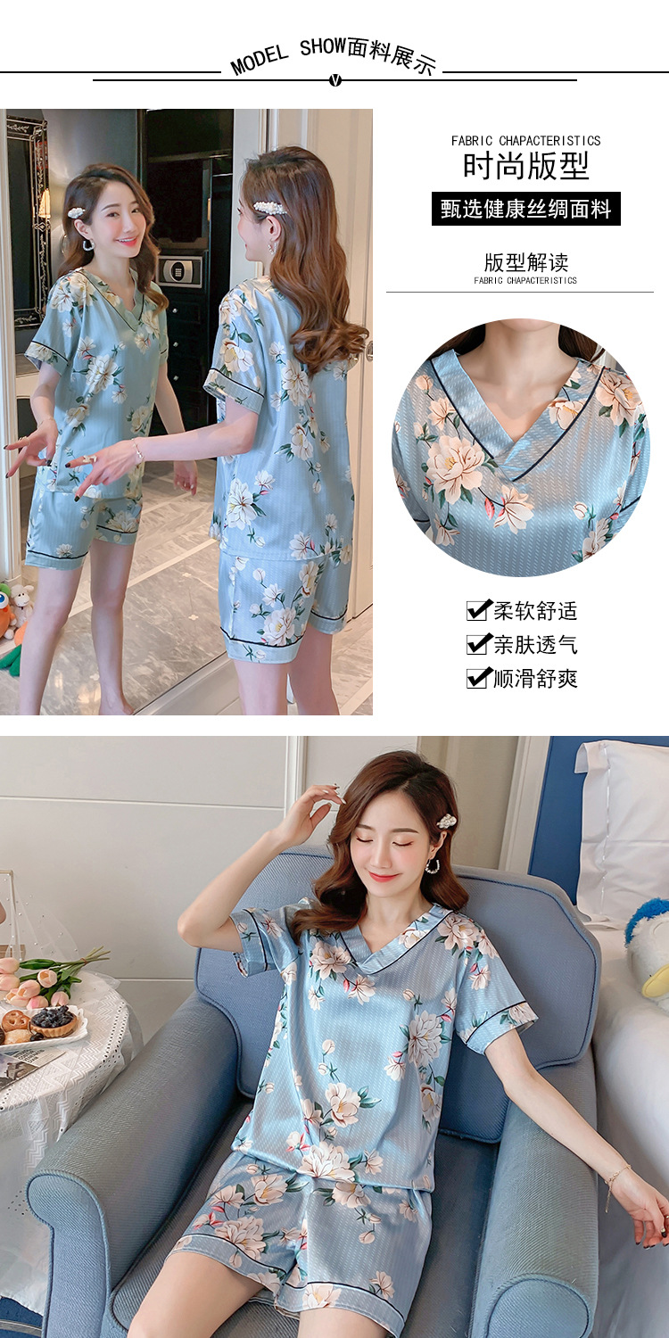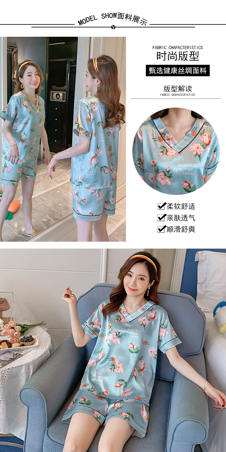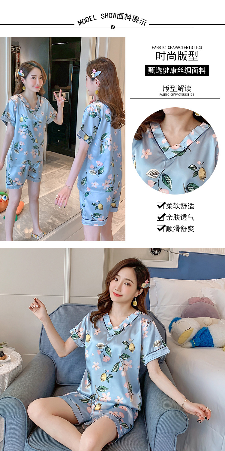 夏のパジャマの女性の氷糸の半袖のズボンのvネックの韓国版の甘いシミュレーションのシルクはスーツの部屋の服を着ることができます。