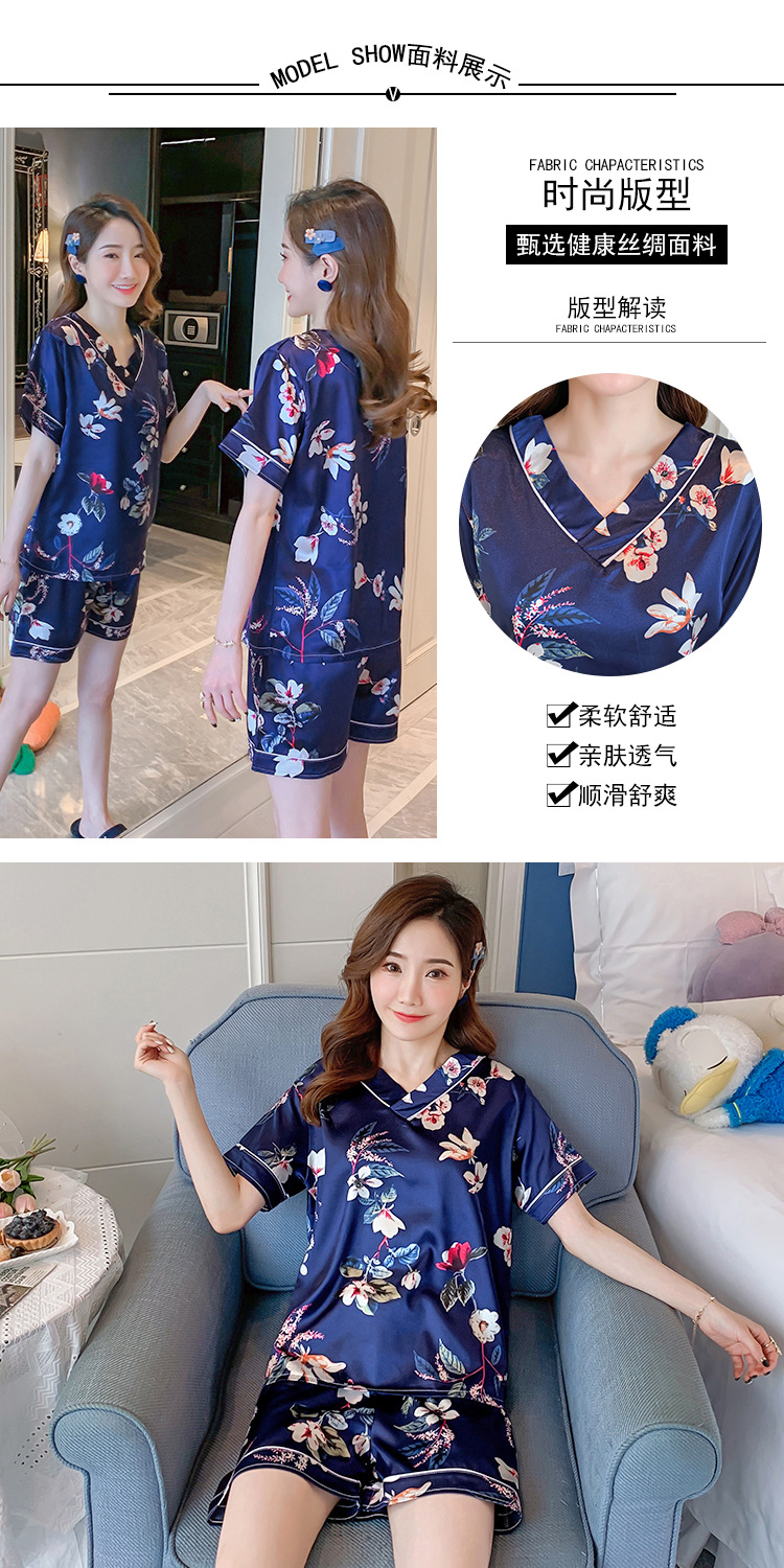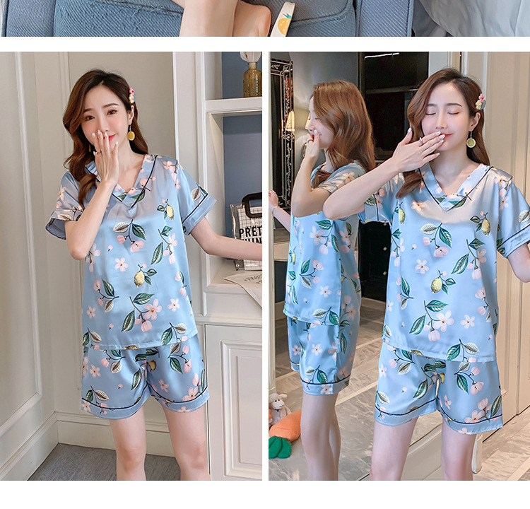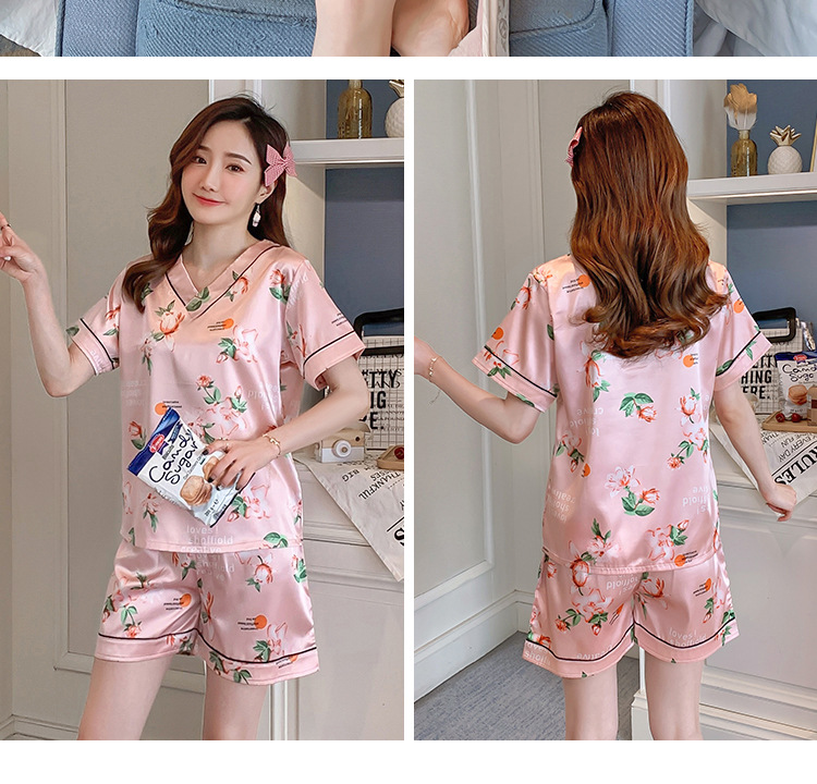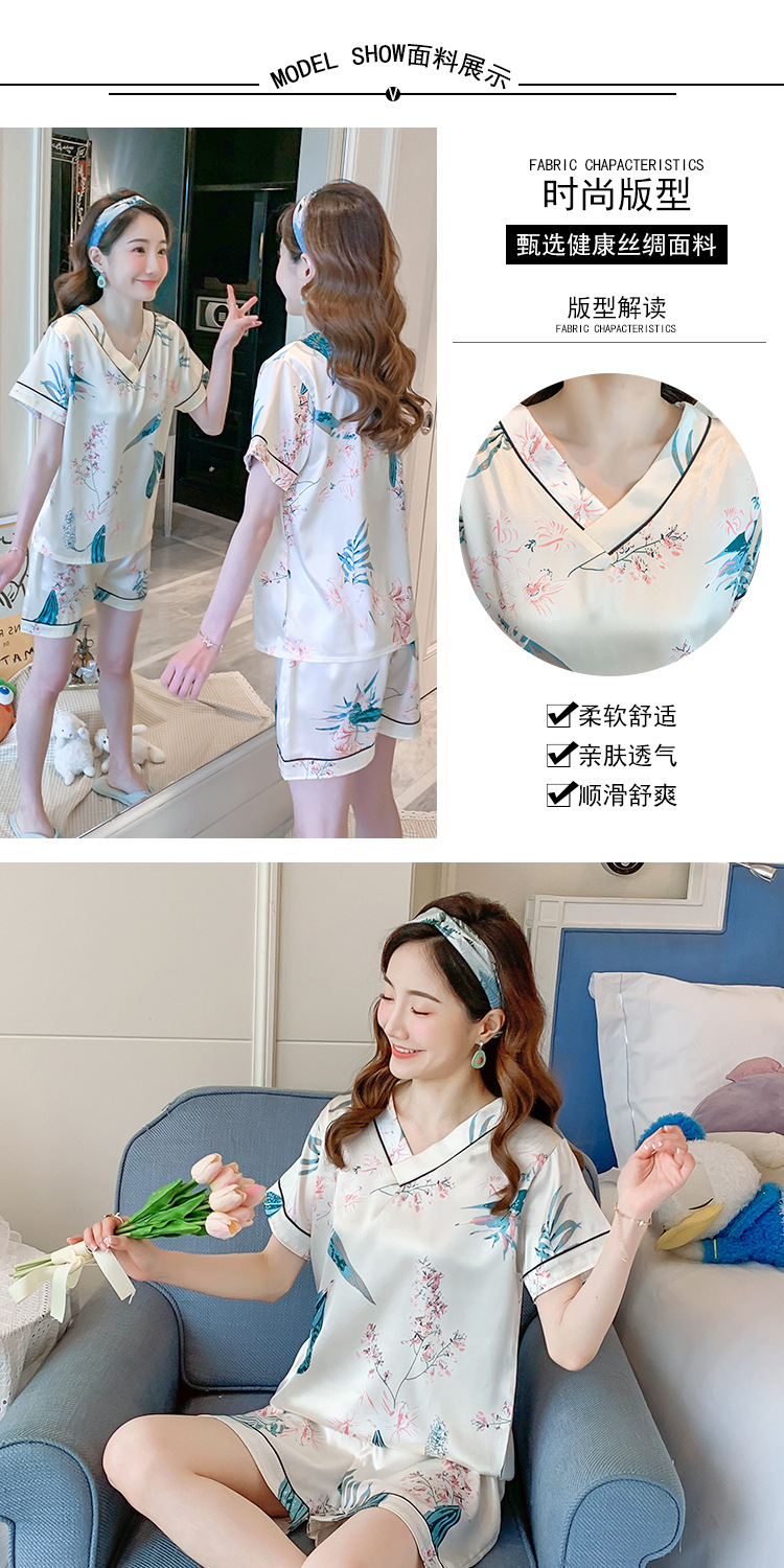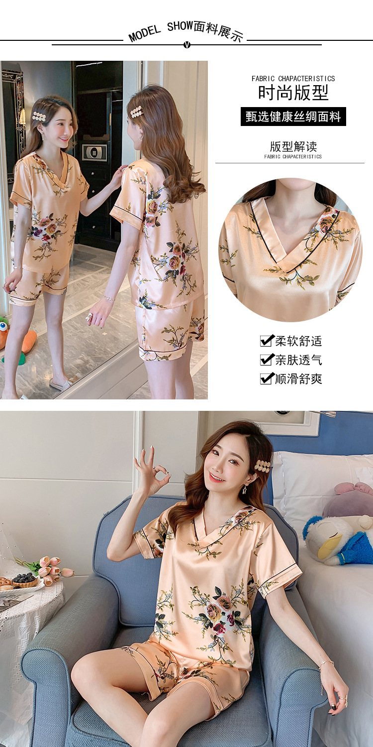 夏のパジャマの女性の氷糸の半袖のズボンのvネックの韓国版の甘いシミュレーションのシルクはスーツの部屋の服を着ることができます。