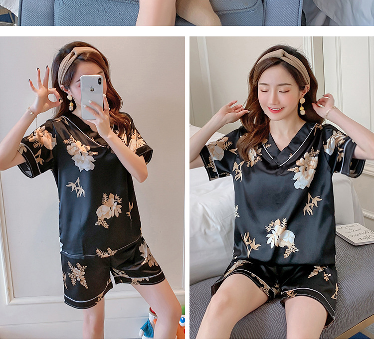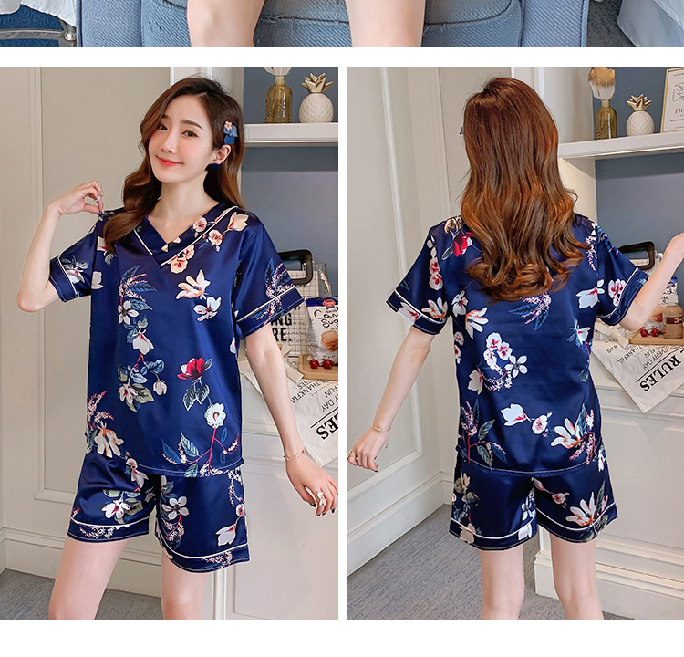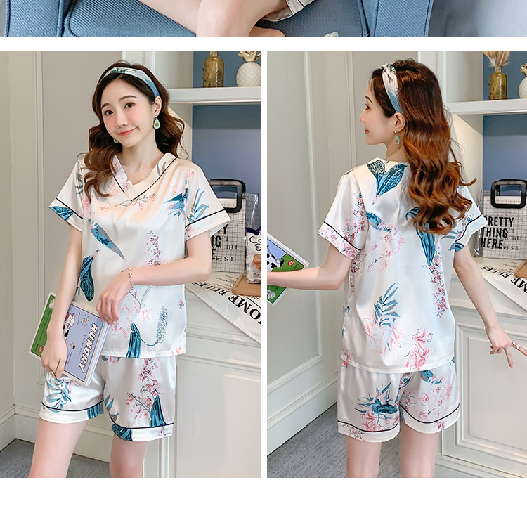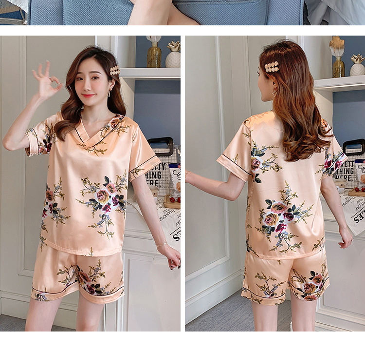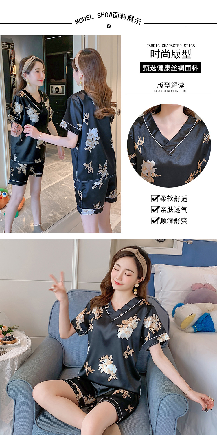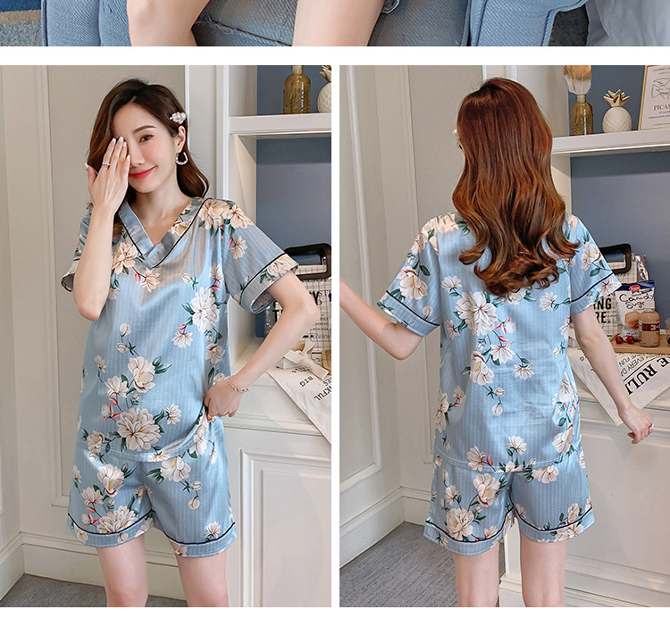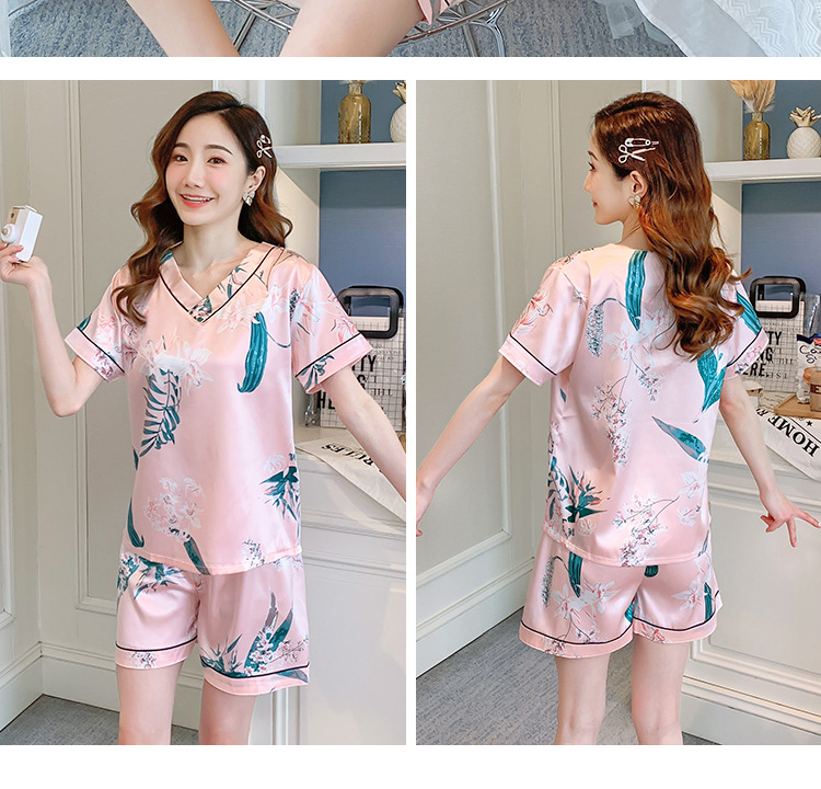 夏のパジャマの女性の氷糸の半袖のズボンのvネックの韓国版の甘いシミュレーションのシルクはスーツの部屋の服を着ることができます。