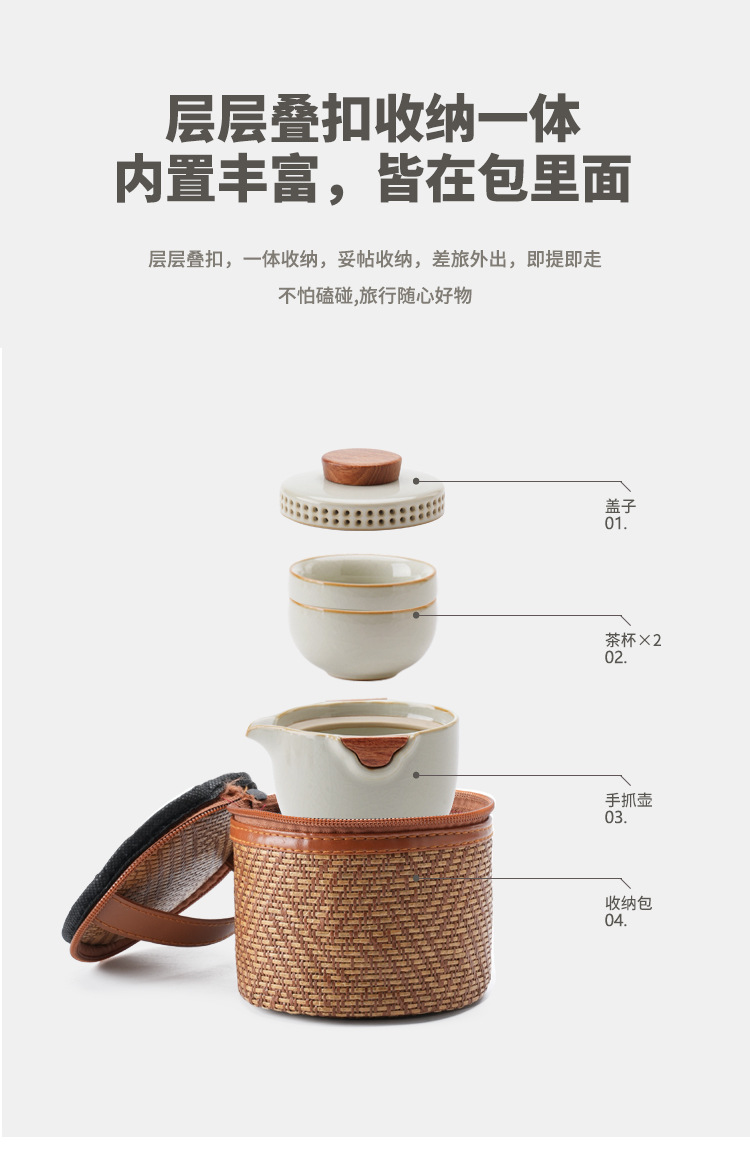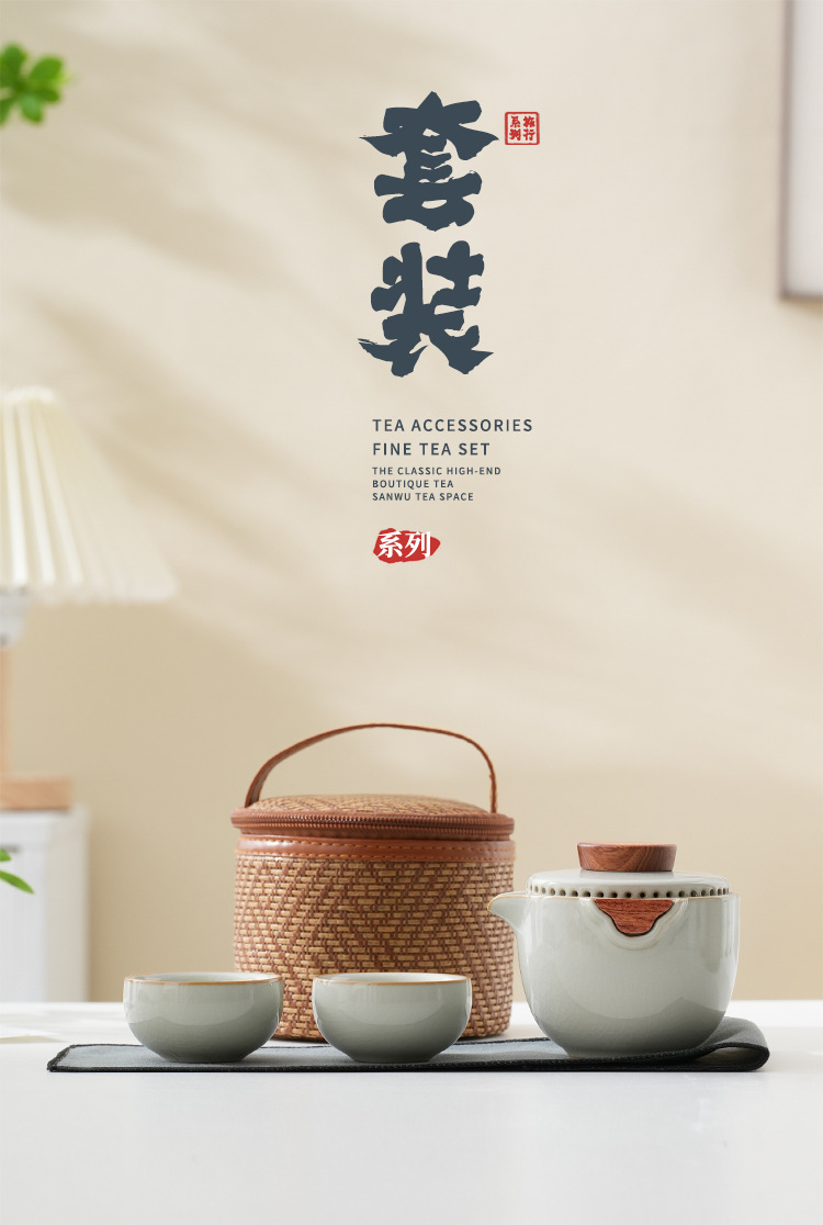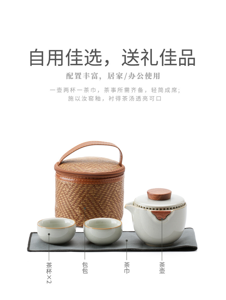 新型汝窯陶磁器旅行茶器快客杯一壺三杯携帯型アウトドアキャンプ会社のお土産