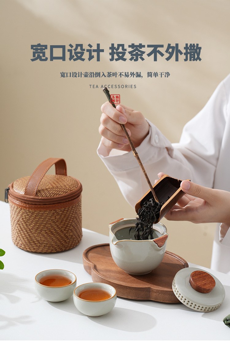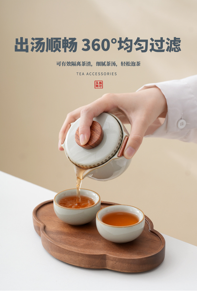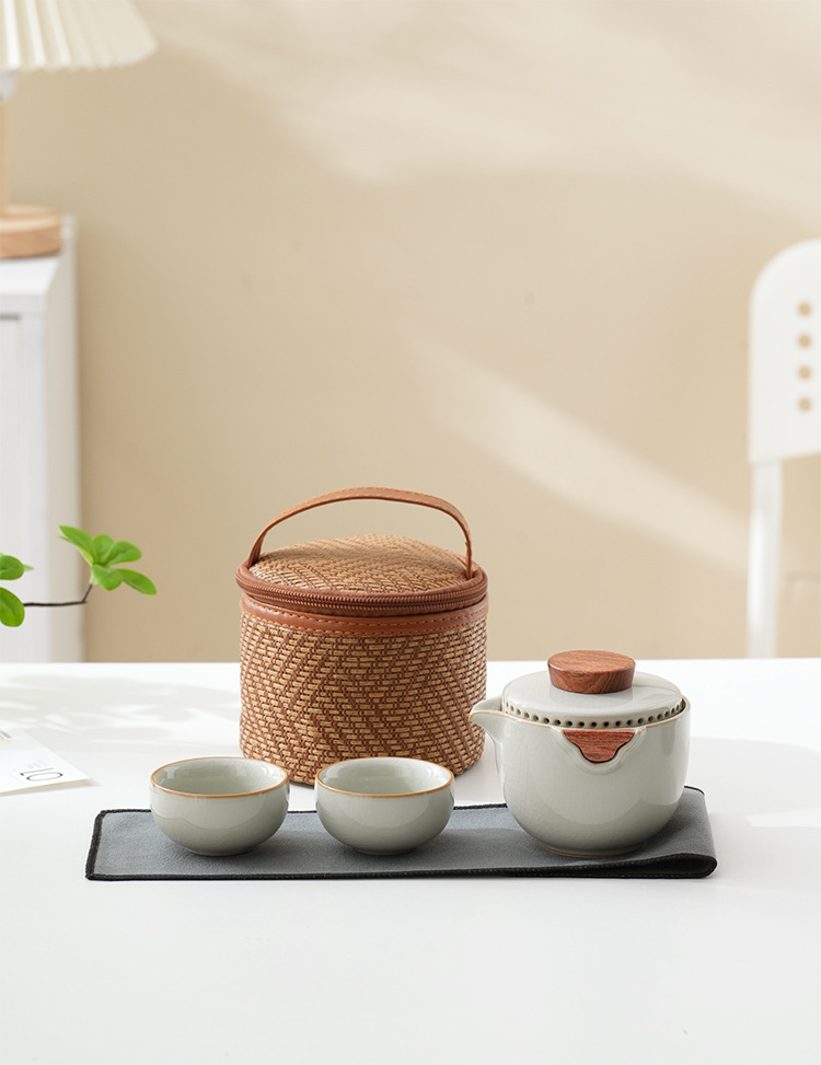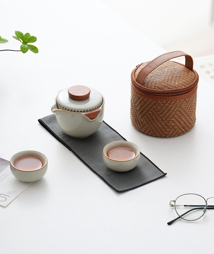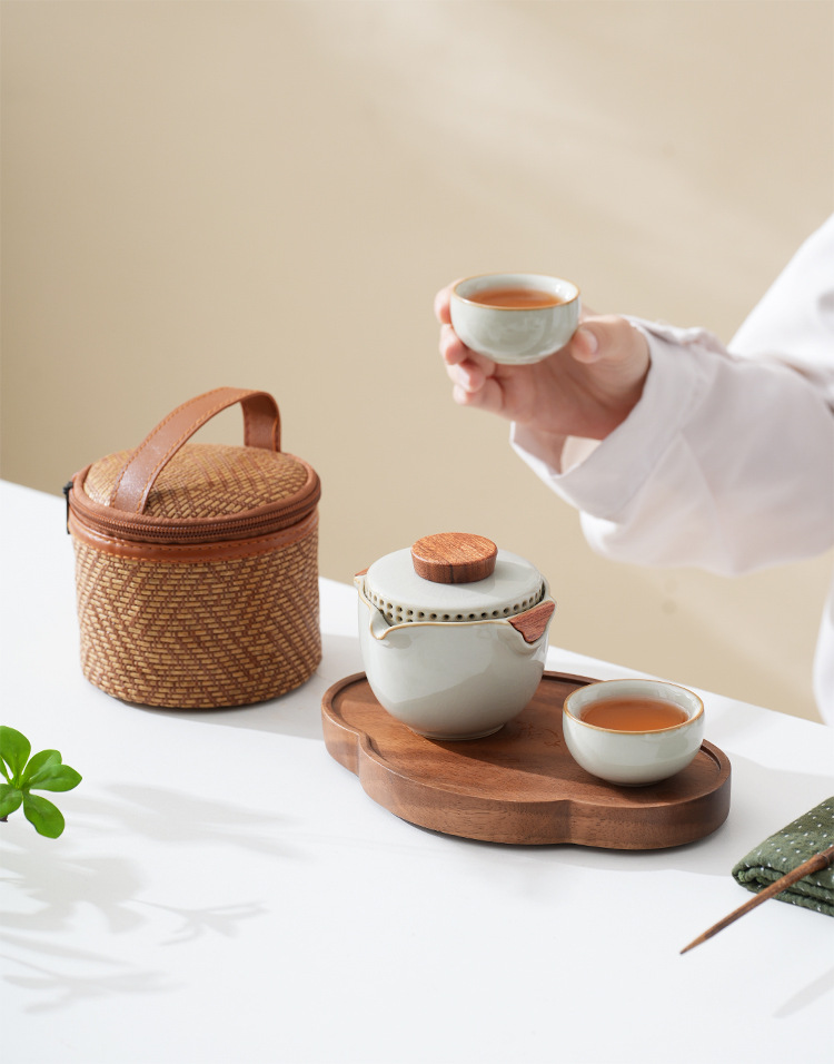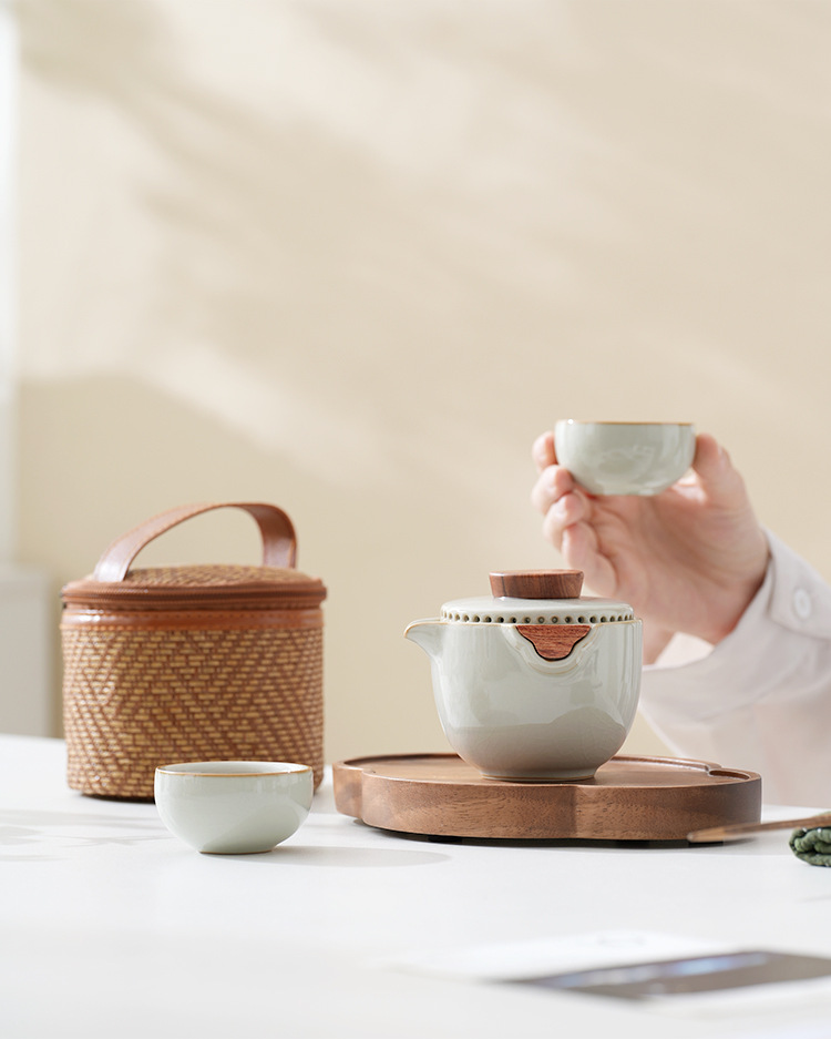 旅行茶器汝窯セット一人でティーポットを飲みます。