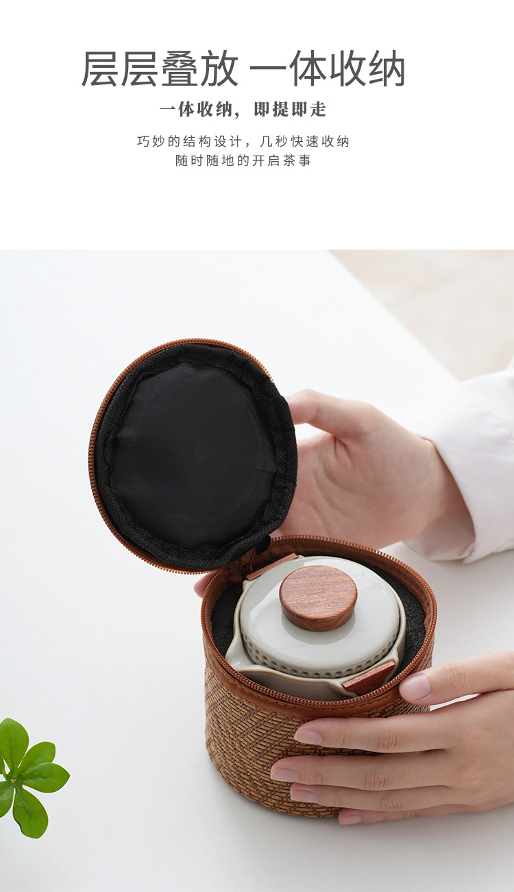 簡単な工夫でティーポットを入れたティーカップ屋外キャンプのファーストカップ米黄汝窯携帯旅行茶器セット