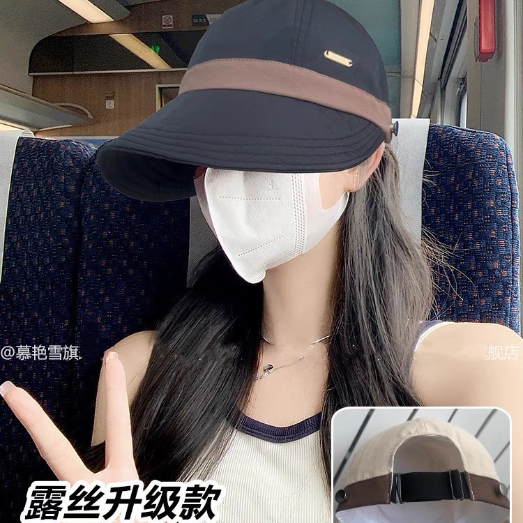 女性用ひさしキャップ、春夏の日よけアウトドアハット、紫外線防止、速乾性日焼け止めハット、ハーフオープントップサンフィッシャーマンハット