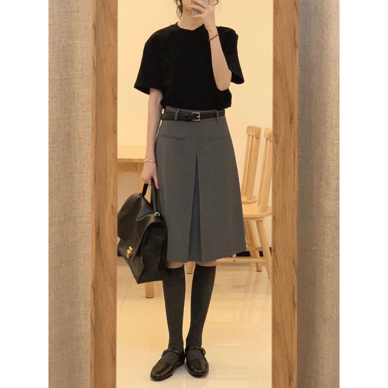 スーツのスカートの夏のフランスのデザイン感の夏の新型のレトロな気質の黒いtシャツのスカートの2つのセット
