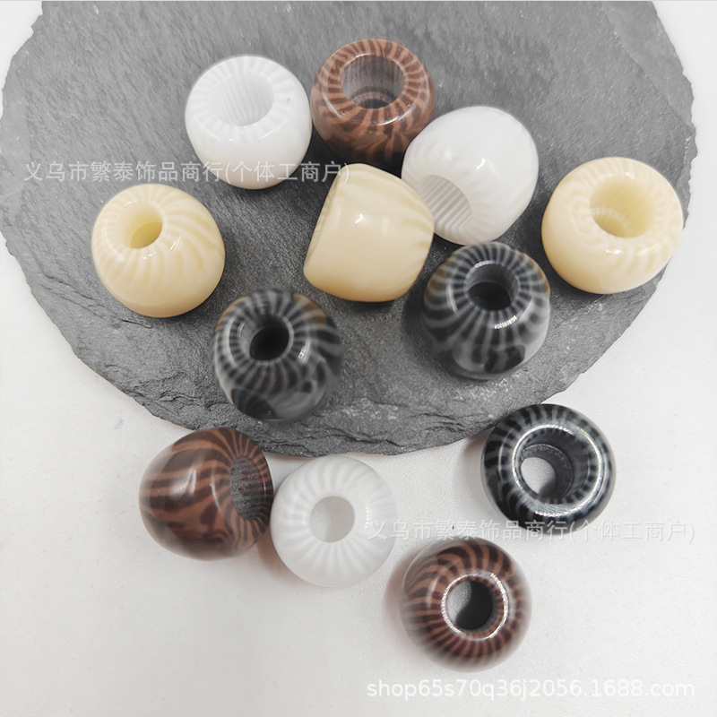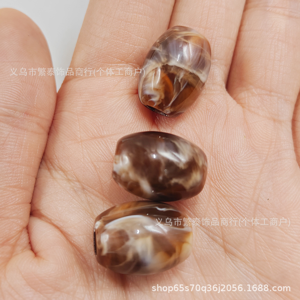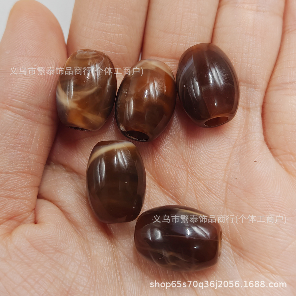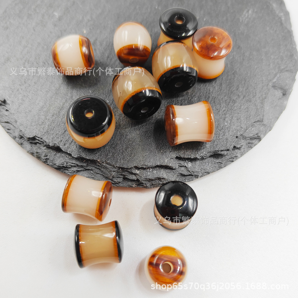 复古亚克力大孔桶珠算盘珠流纹裂纹穿孔头绳手机链饰品配件