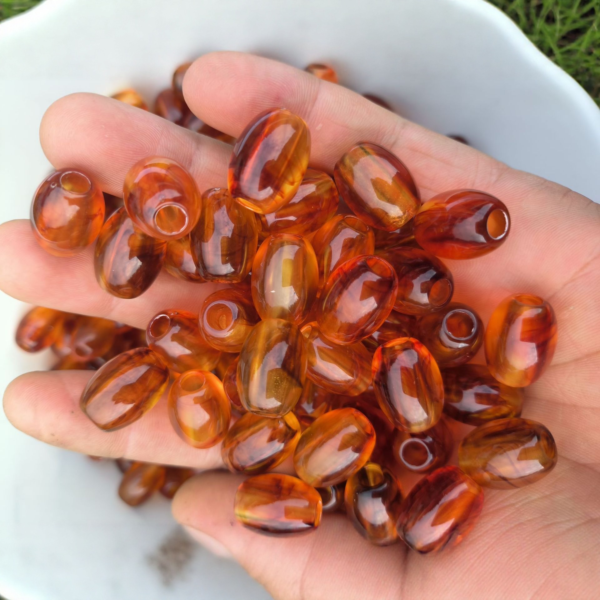 11x16mm樹脂2色大穴バレルビーズ楕円ビーズDIY手作り携帯電話チェーンバッグ靴服ネックレスアクセサリー