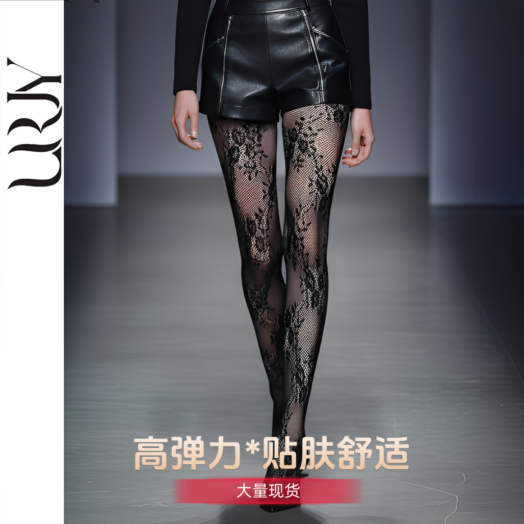 高级感蕾丝花朵网袜渔网袜子花朵图案镂空花卉提花网袜女薄款连裤