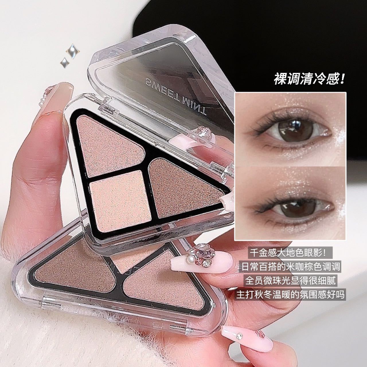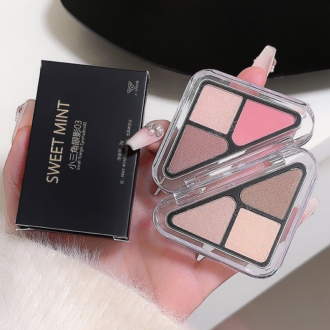 Sweetmintの小さい三角のアイシャドーのつや消しの真珠の光はばらばらに輝いて大地の色の薄い化粧の1皿は多く携帯のアイシャドーの皿を使います。