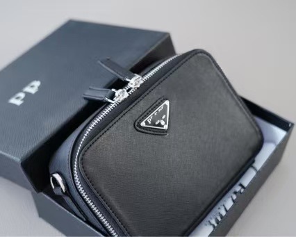 Pラダメンズ新型カメラバッグ手提げ小角ケースバッグ若いファッションシングル肩斜め掛け郵便バッグ