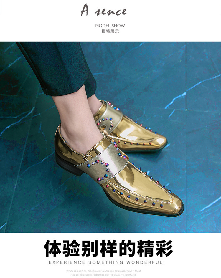 Large size47男靴チェルシーゴールド戦靴ブルー妖姫ミニ靴Genuine Leather