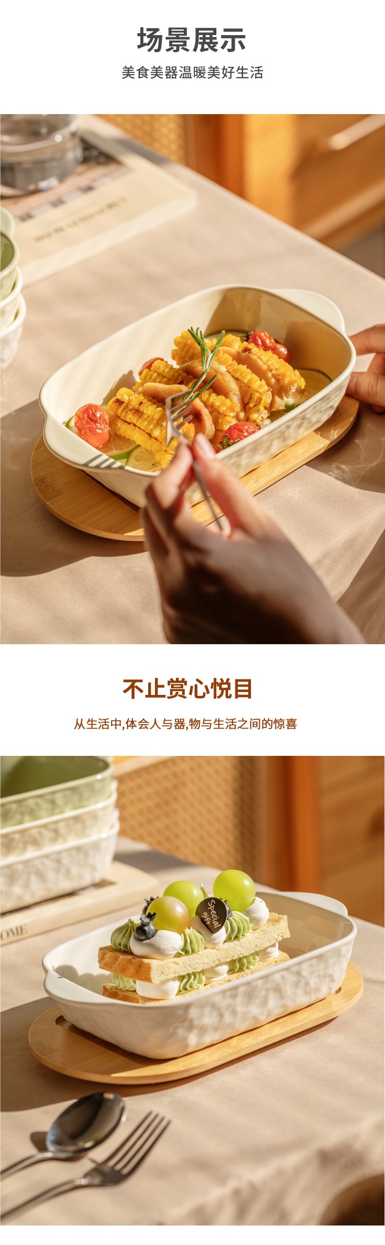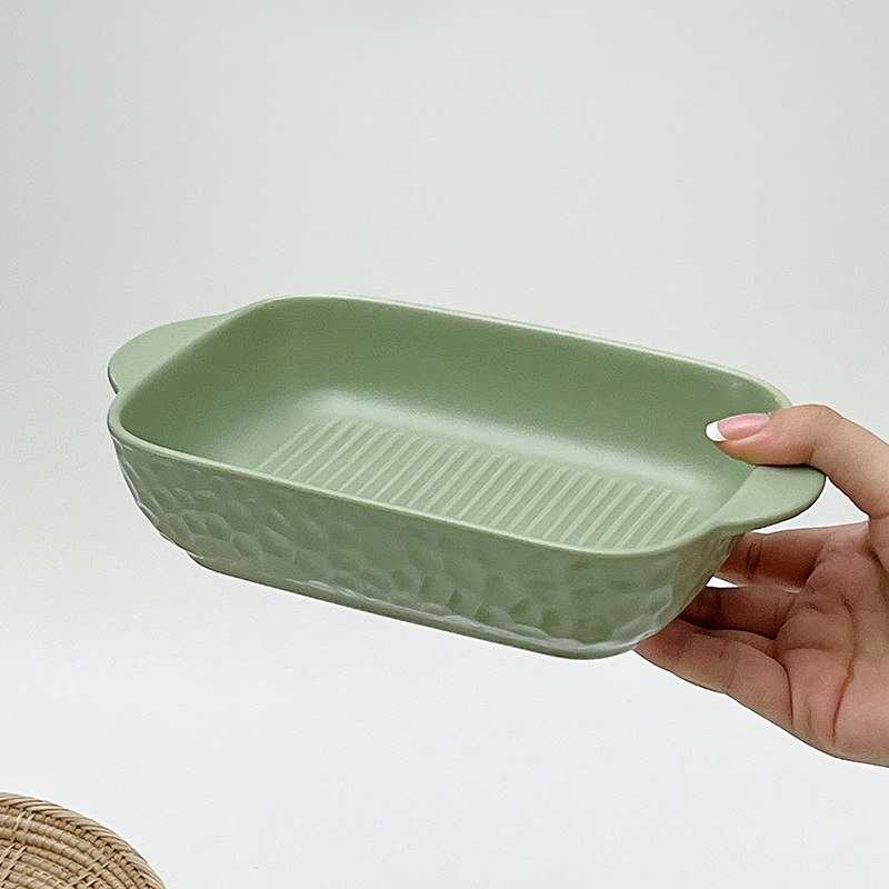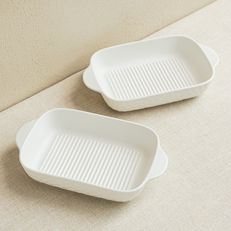 北欧陶磁器焼き皿角型両耳縞食器皿食器ins風食事皿純色グラタン皿家庭用カスタム