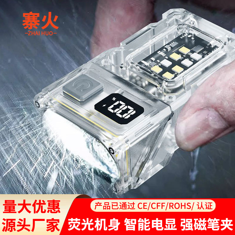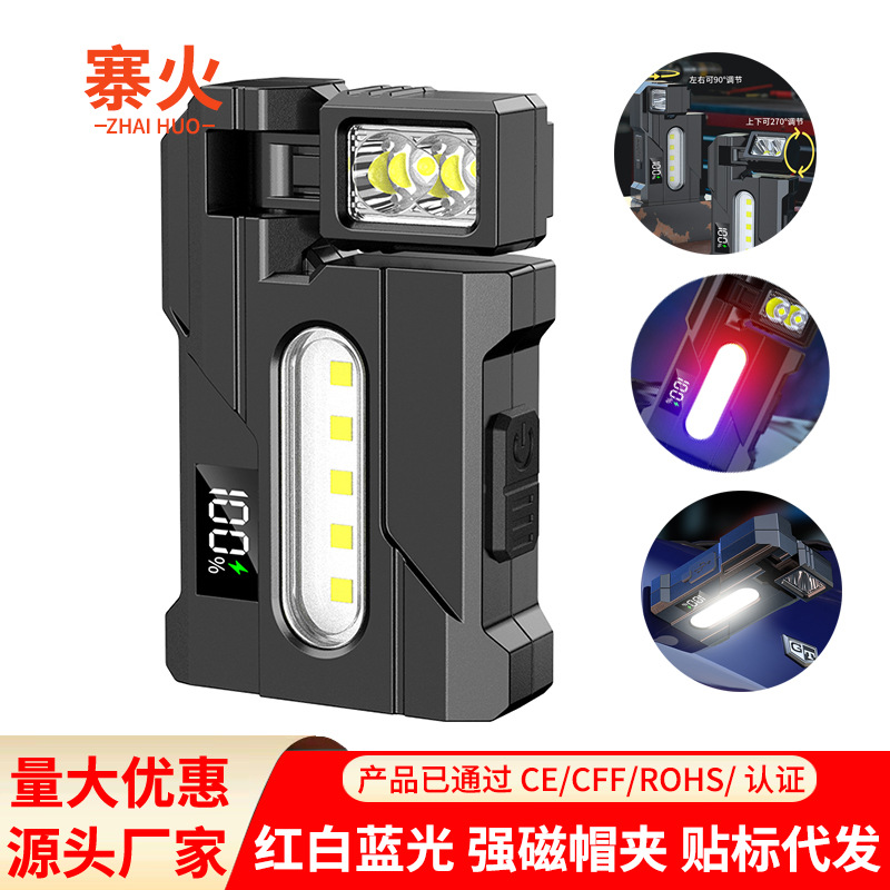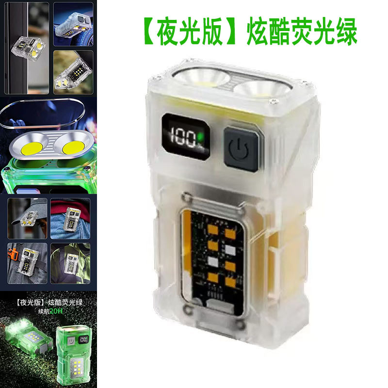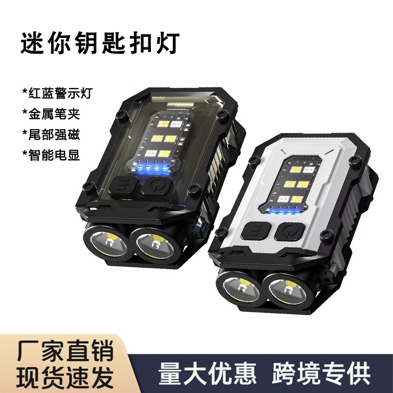 强光手电筒便携钥匙扣灯多功能迷你充电工作灯超亮户外照明夹帽灯