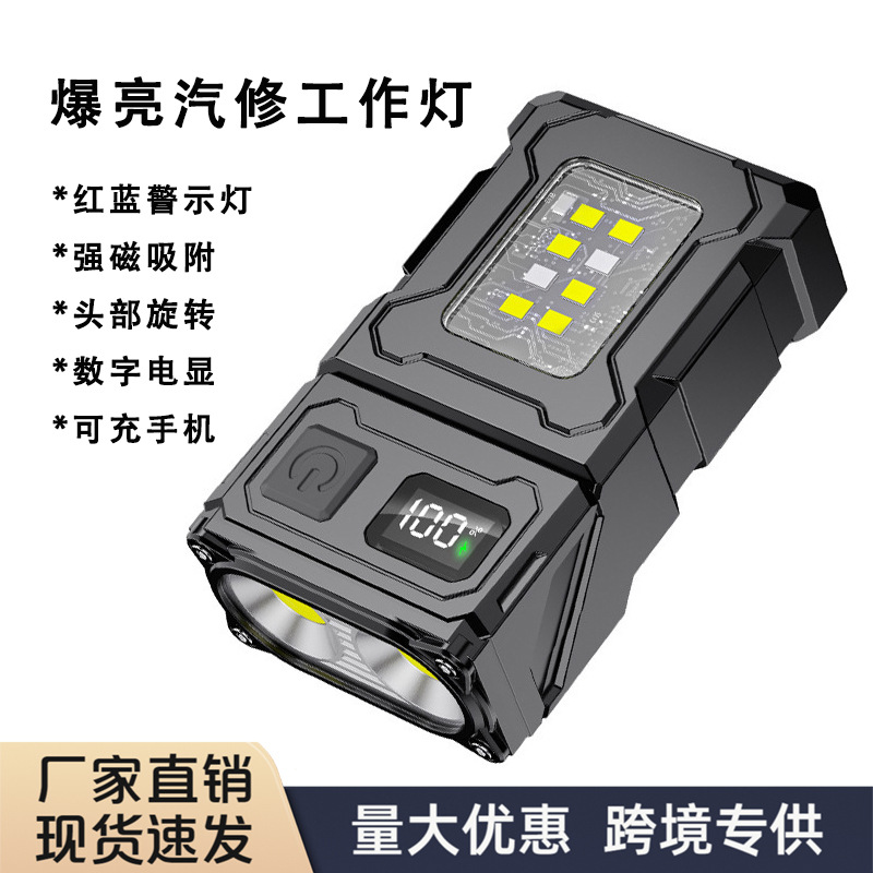 新款跨多功能磁吸式led工作灯汽修维修灯照明手电筒强光充电小型