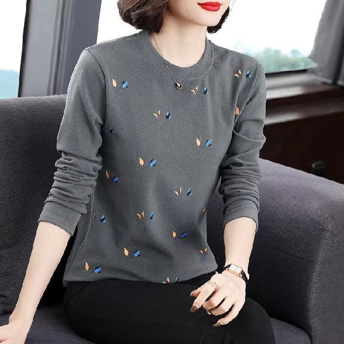 新しい長袖tシャツの女性2023春秋の新しい中年のお母さんの洋気の上着の大きいサイズはゆったりしていて痩せています。