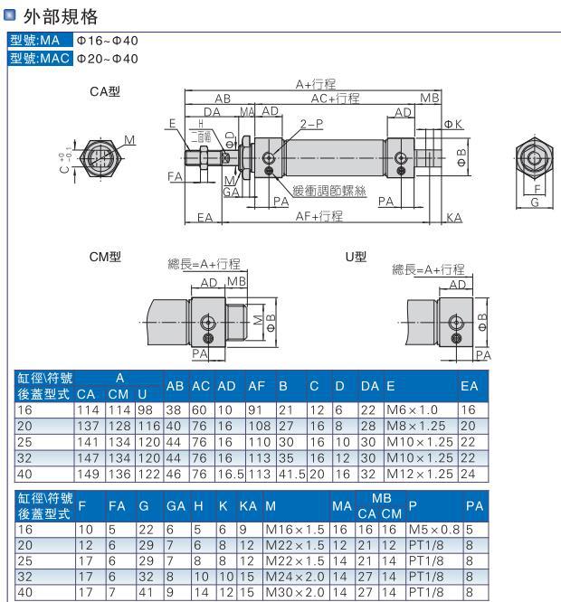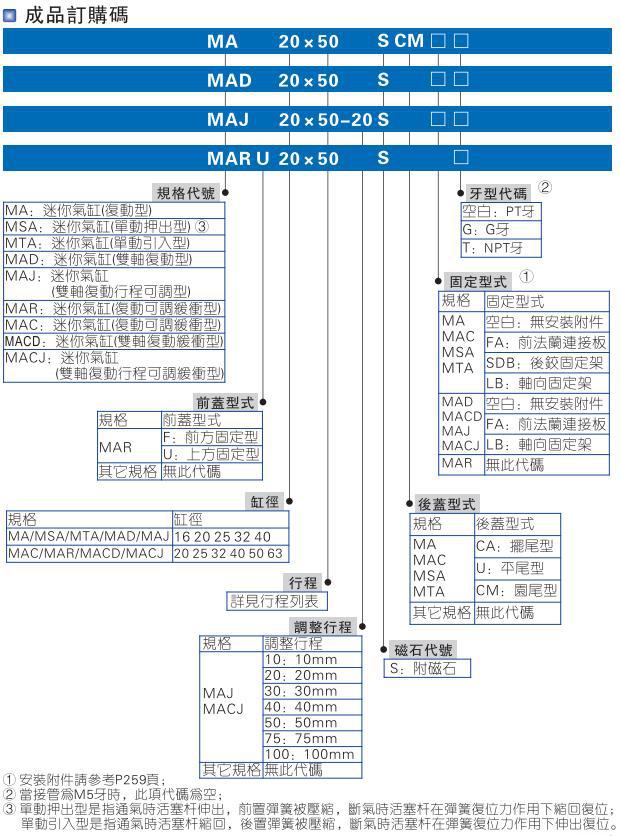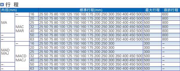 モデル MA25*10/20/25/30/40/50/60-S-CA/U/CM