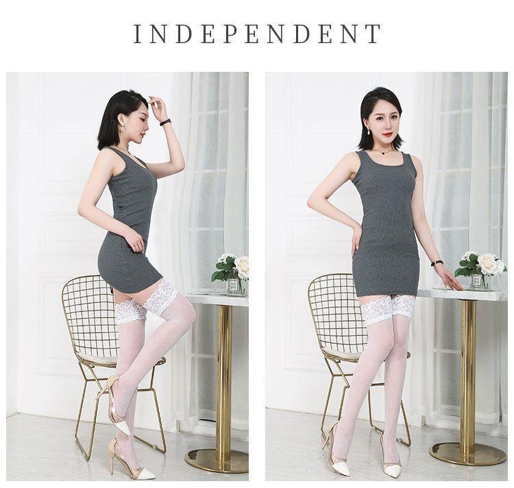 ストッキングの女性のセクシーな超薄型タイプの白い膝の高い筒の太ももの黒い半分の純粋なレースのネットの靴下