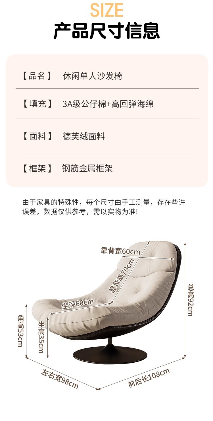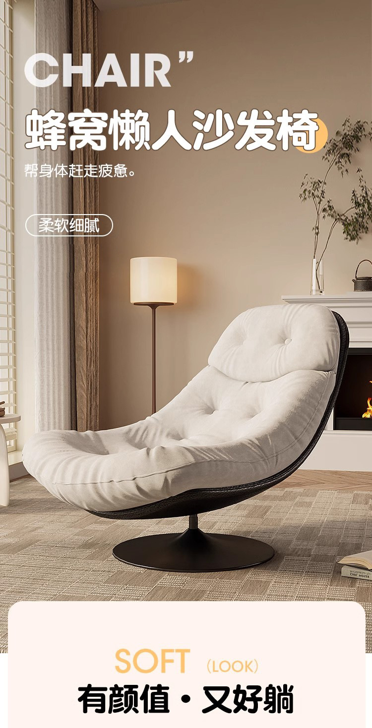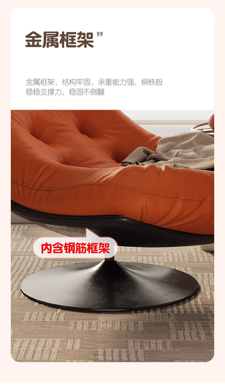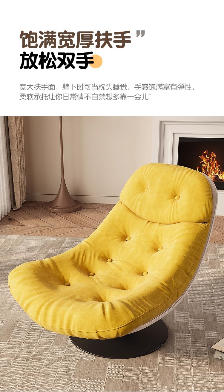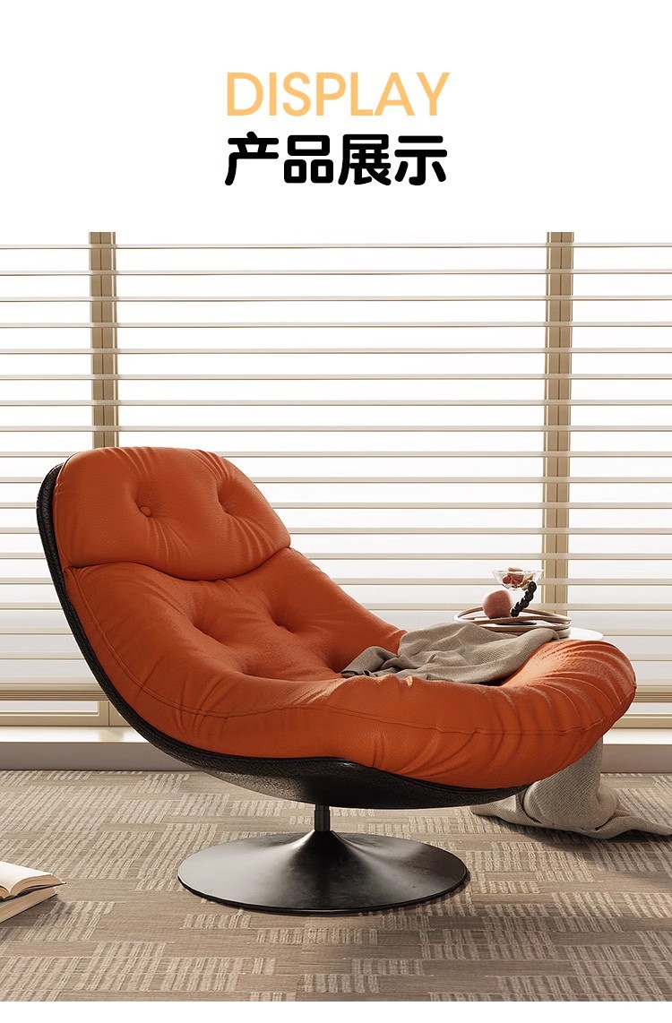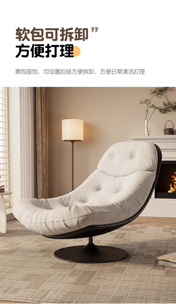 北欧极简意式沙发椅客厅轻奢单人休闲椅可旋转懒人沙发椅网红躺椅