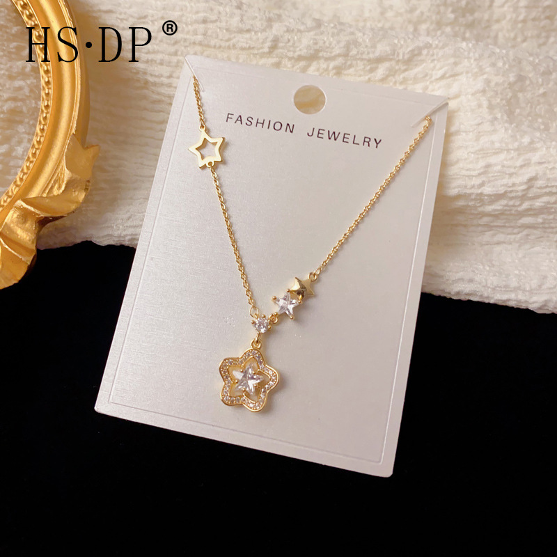 精致时尚轻奢锆石星星吊坠项链小众气质简约独特设计超闪颈链批发