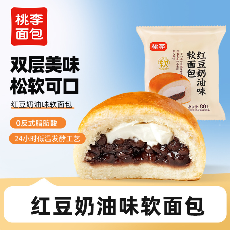 桃李パン赤豆クリーム味新製品おいしいお菓子満腹学生80g * 7袋