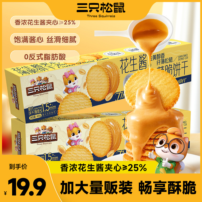 Three Squirrels ピーナッツバターサンドクッキー 420g ポテトクラッカー 個包装-XH
