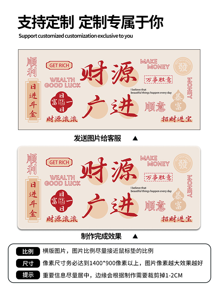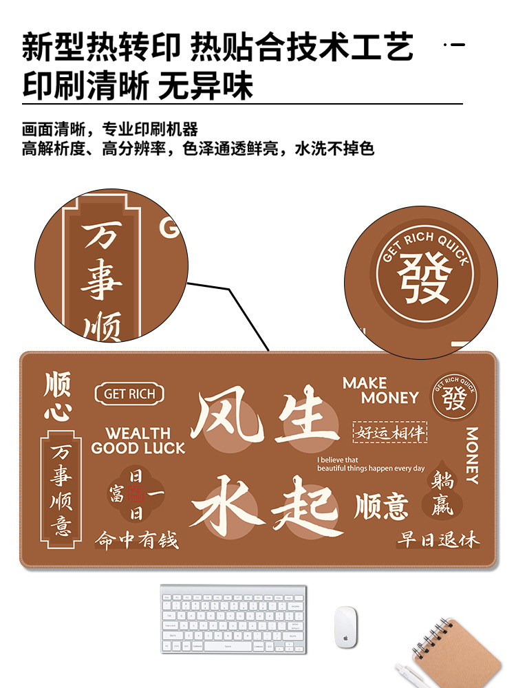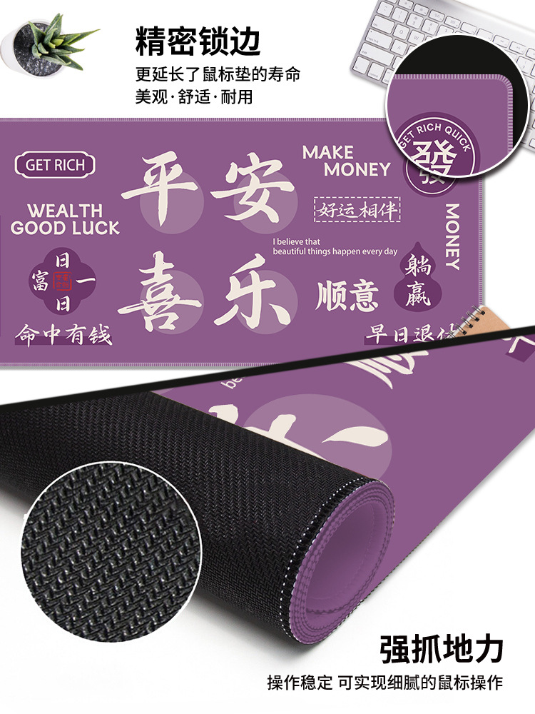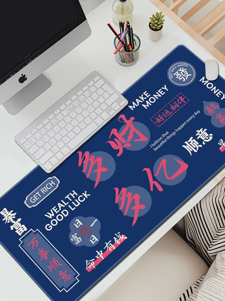 创意发财鼠标垫超大号暴富文字办公电脑桌垫加厚防滑键盘垫可定制
