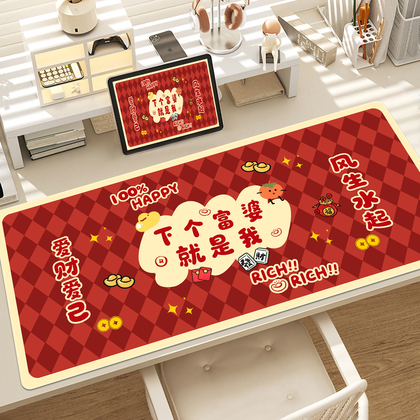鼠标垫超大号桌垫文字创意男女生办公室键盘电脑红色富婆发财