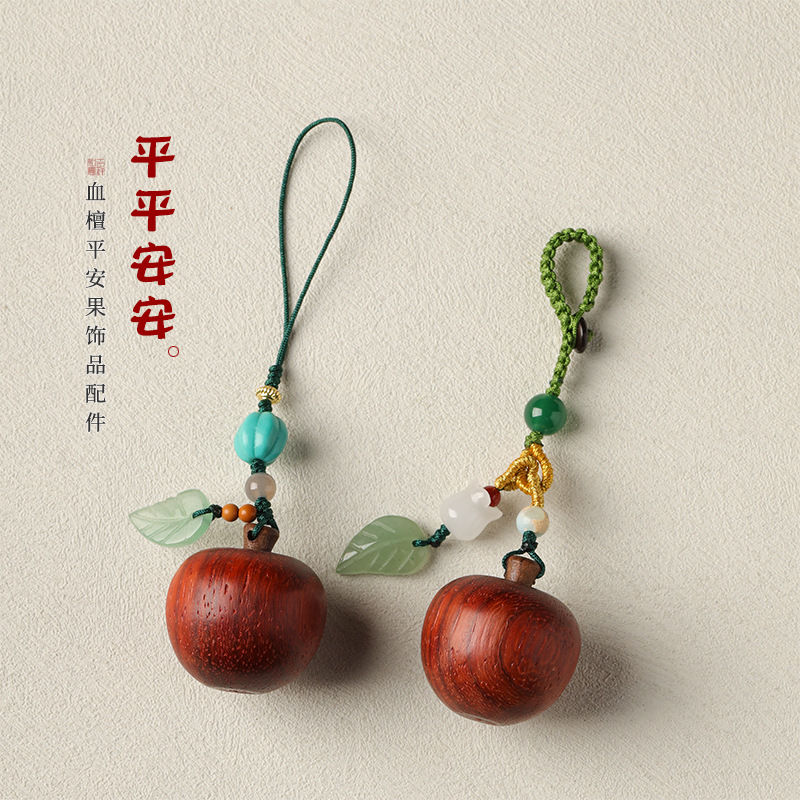 【平安安】血檀平安果創意自動車キーホルダーレトロ文芸携帯ストラップアクセサリープレゼント