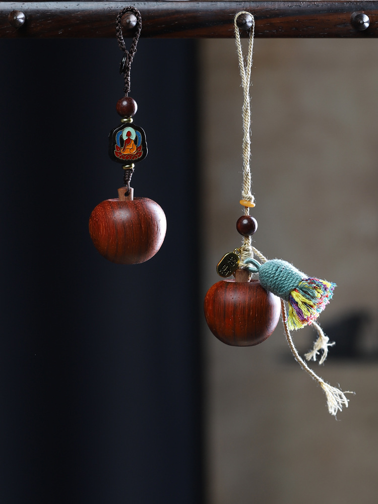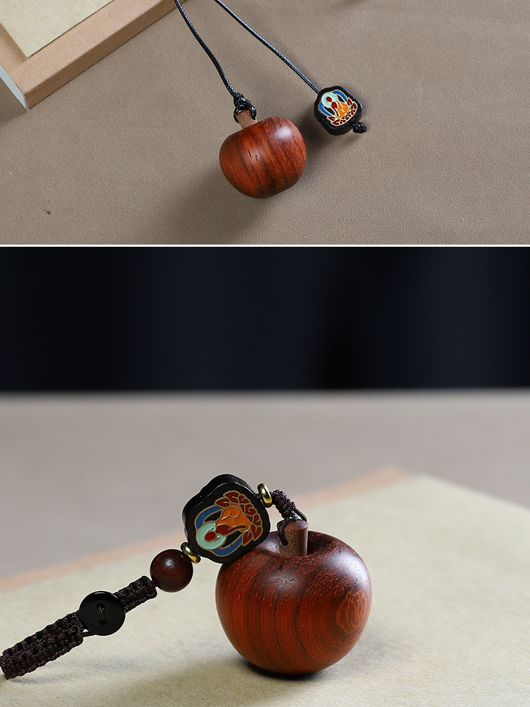 紫檀木平安喜楽実木創意彫刻アップルバッグペンダントのキーホルダー