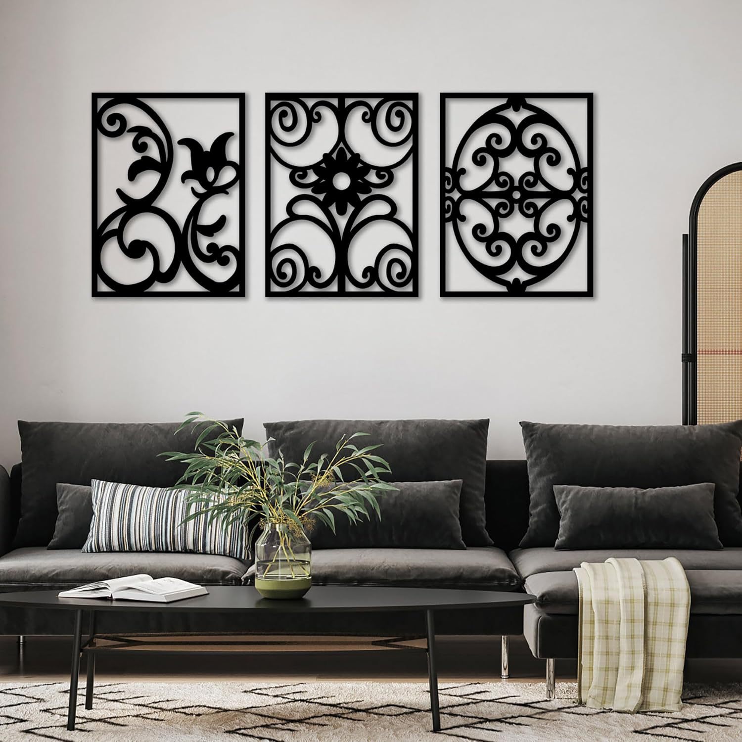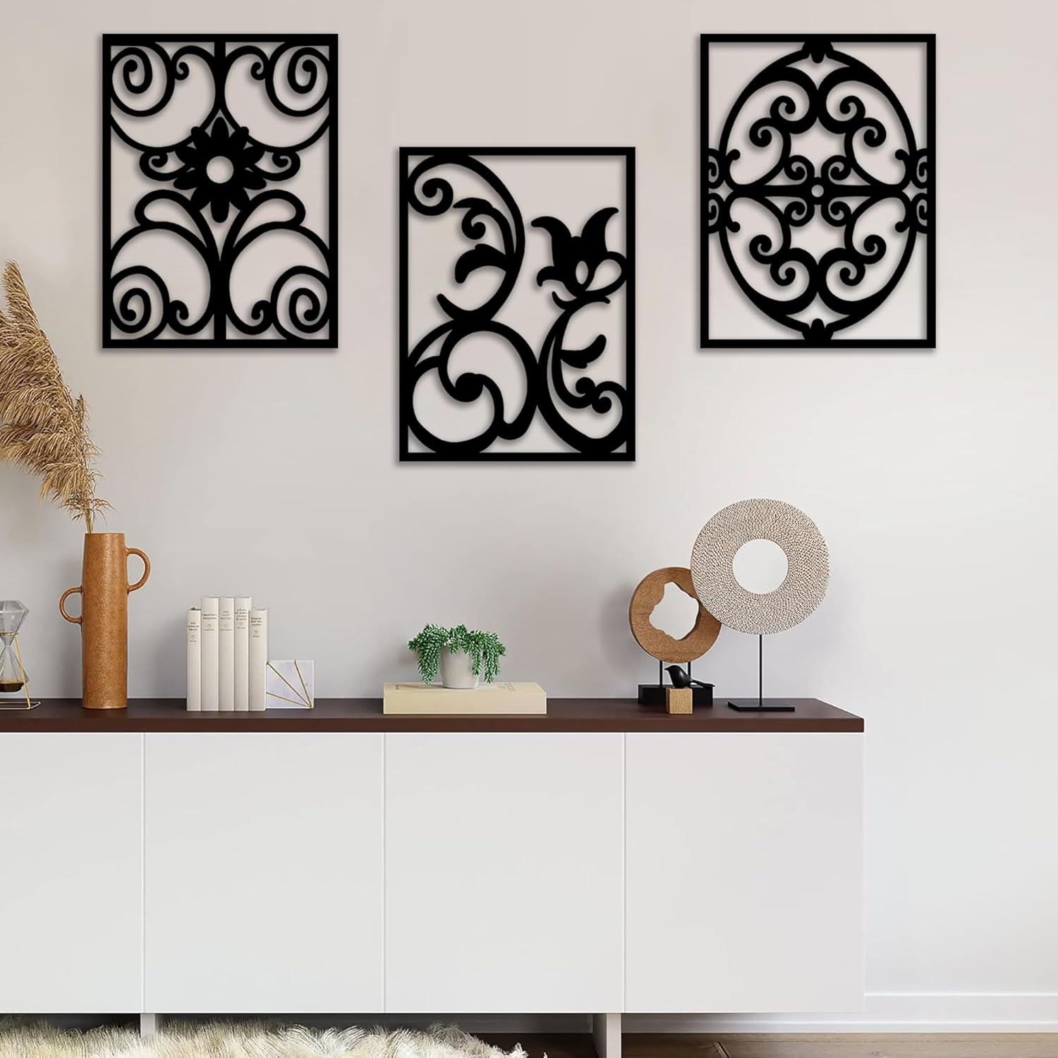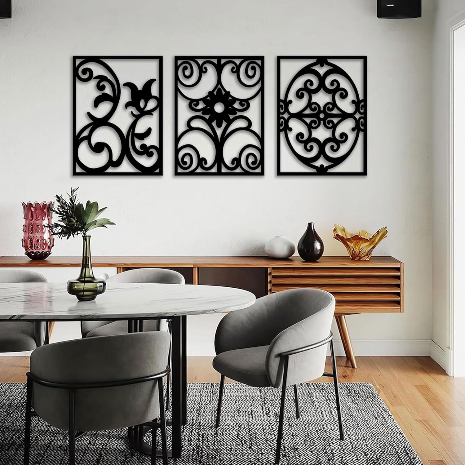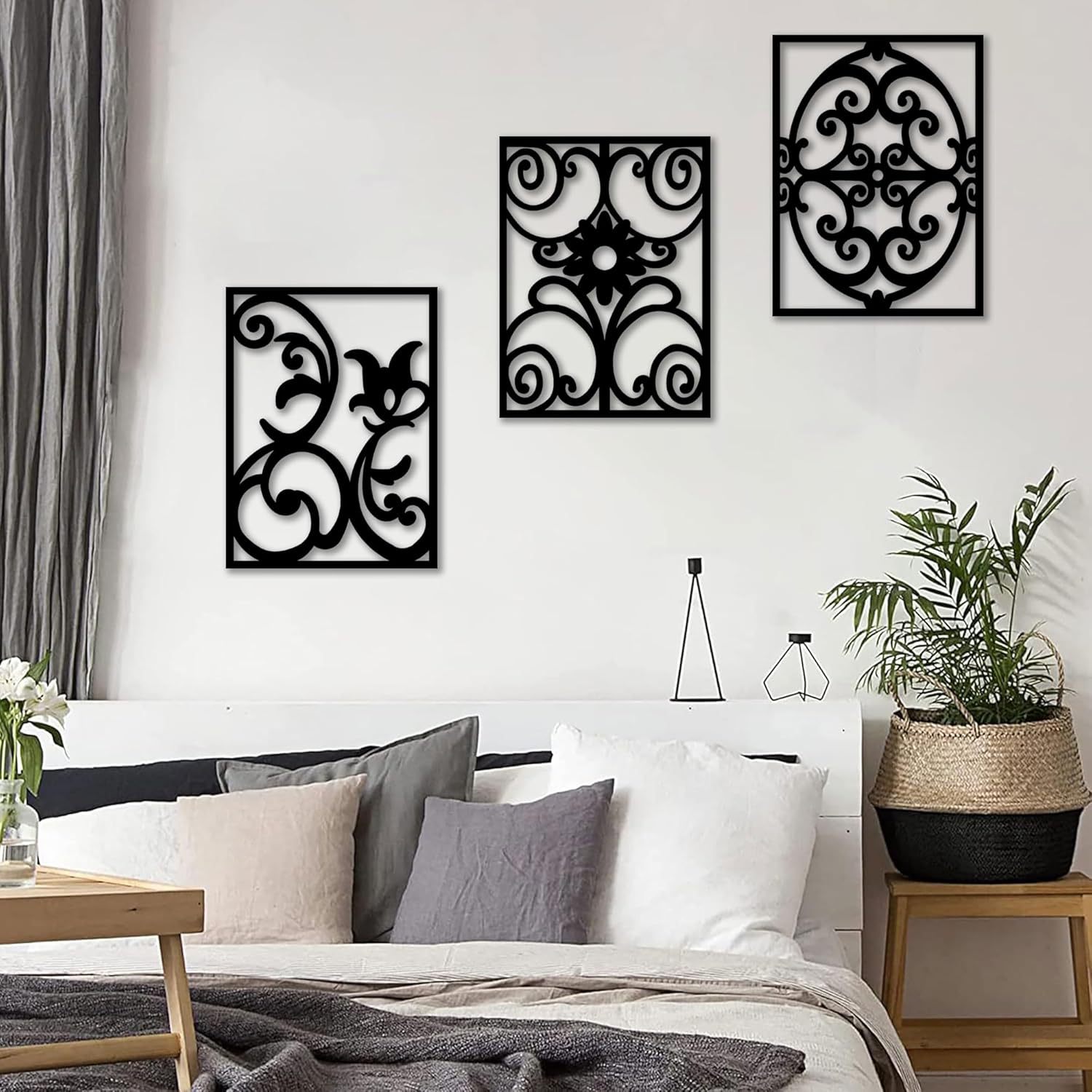 4ピース入りボヘミアンブラック抽象的な金属壁アートミニマリズム装饰ラインアート装饰