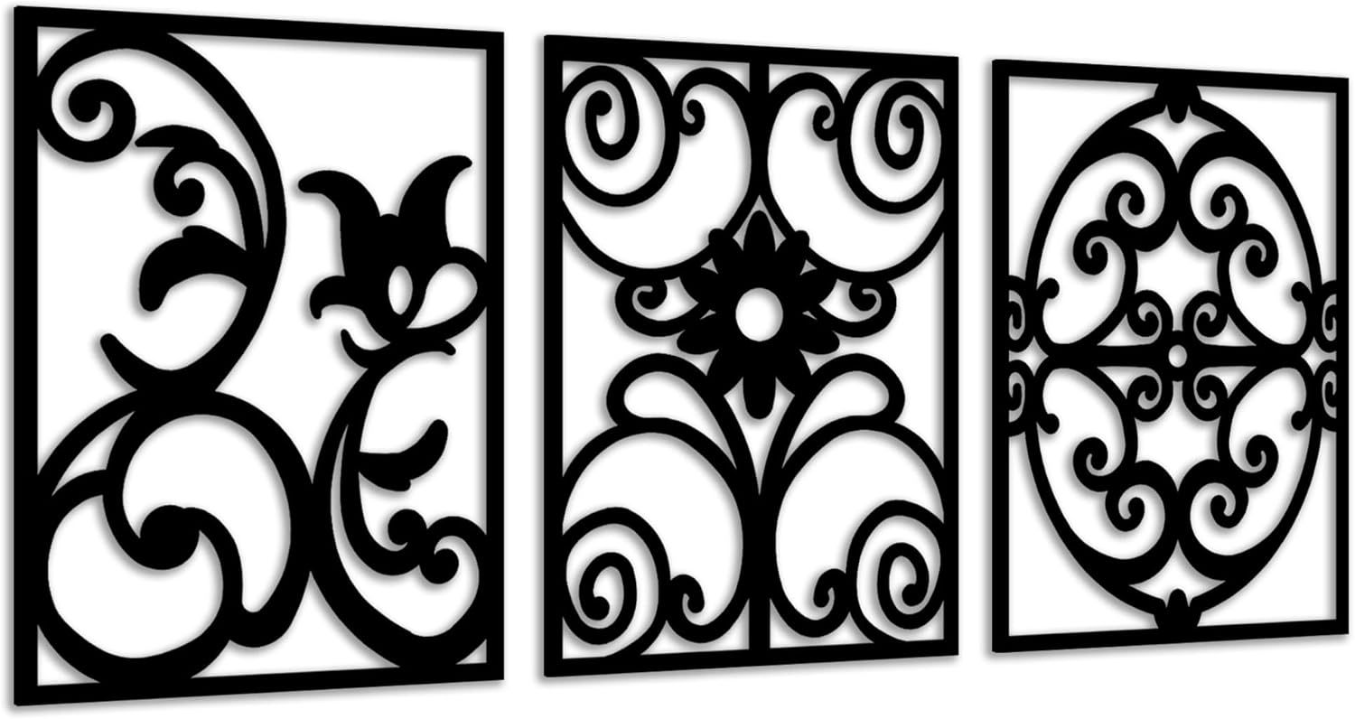 黒い鉄製の花の壁の装飾の芸術の庭のベランダの壁の装飾の花の標識3点セット