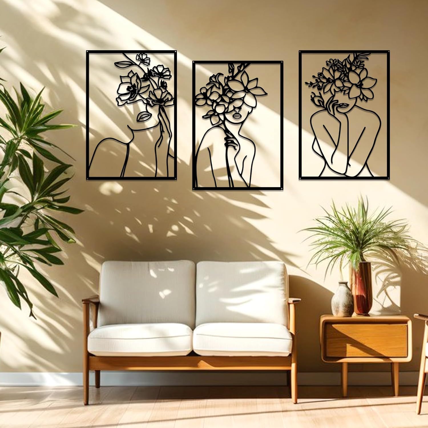 3ピース黒い金属の壁の装飾ミニマリズム抽象的な金属の壁のアートモダンな女性のラインアートの装飾