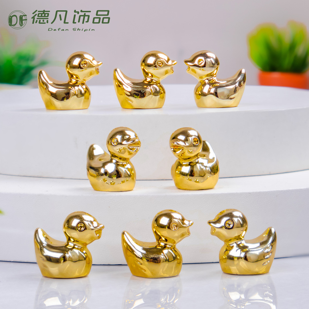外贸跨境热销电镀鸭子桌面装饰品树脂工艺 diy手工车载迷你小摆件